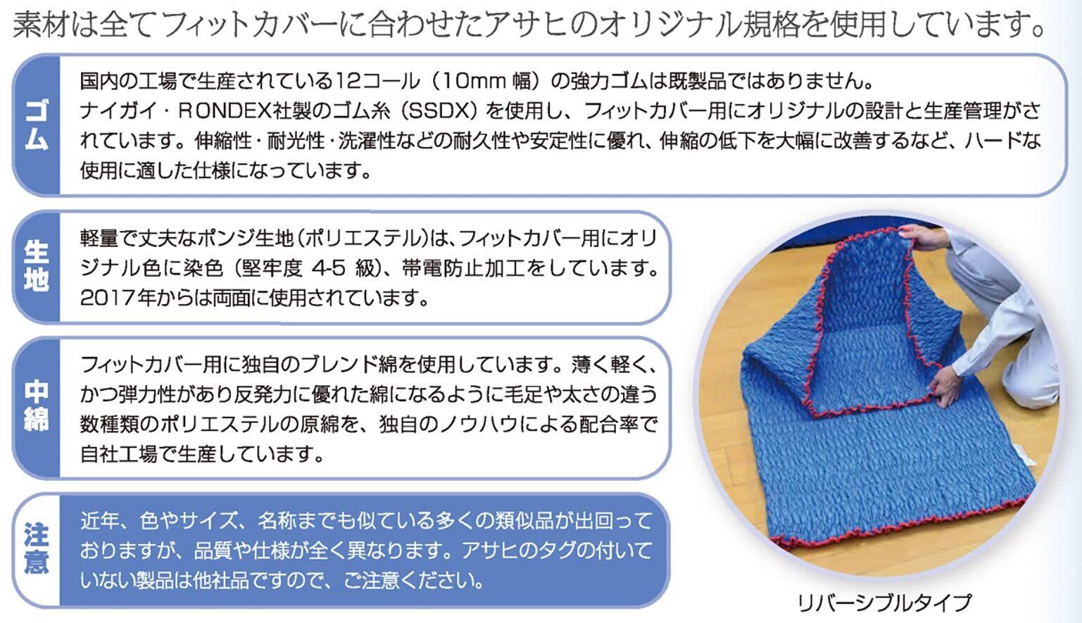 【日本製】アサヒ フィットカバー(ゴム入りパッド)80M 1枚(梱包用品/養生資材/引越し用品/引越資材/蛇腹形状) 表生地:青色・ 裏生地:青色 (両面青色仕様) 円周:1,600~4,000mm / 縦長さ:800mm