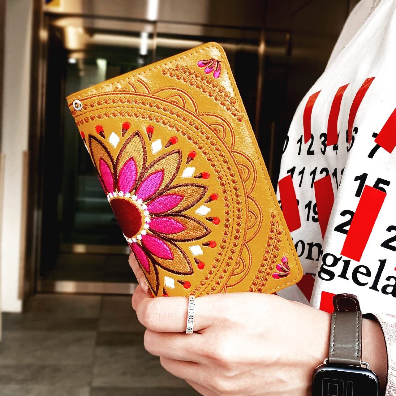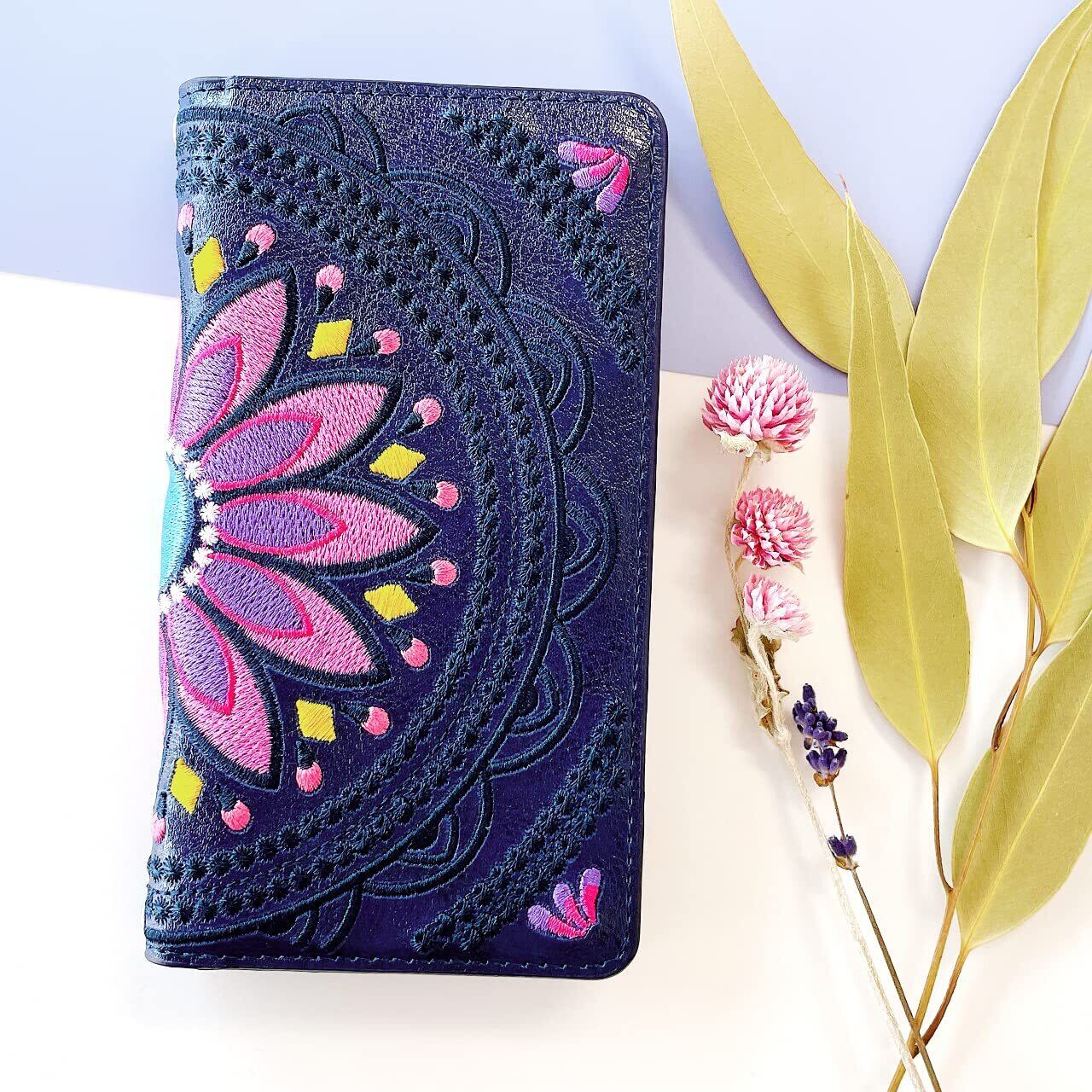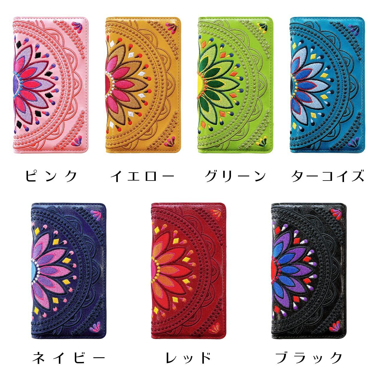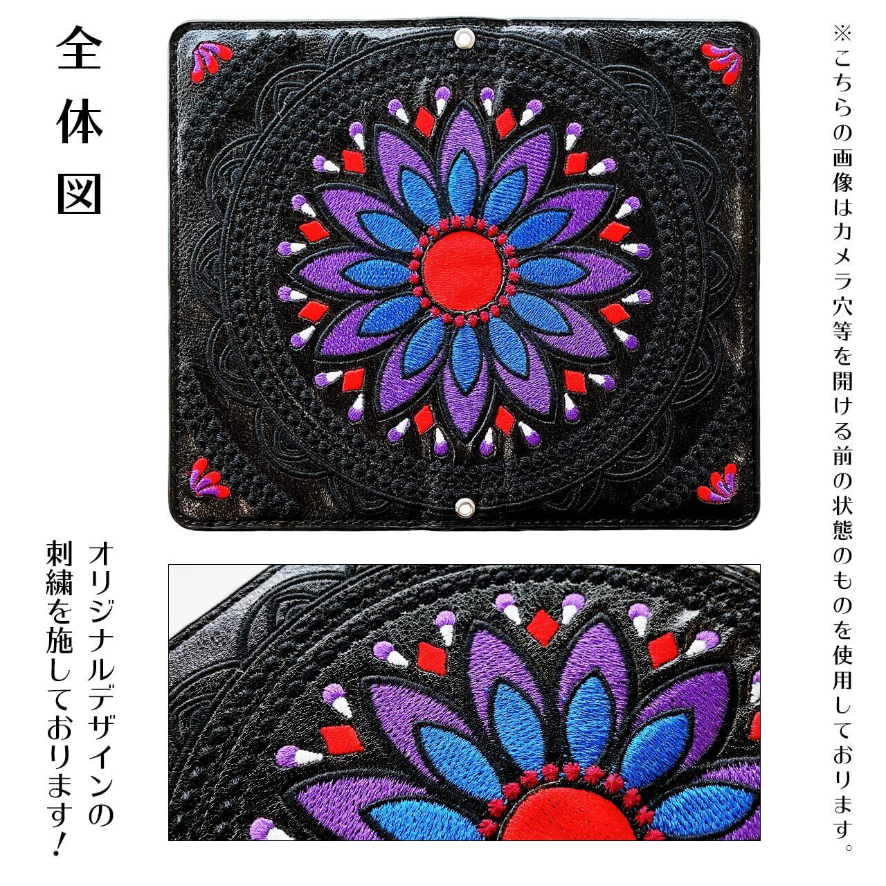 iPhone 13 ケース カバー 手帳型ケース iPhone13 iPhone13ケース iPhone13カバー 6.1インチ エスニック 刺繍 ブラック