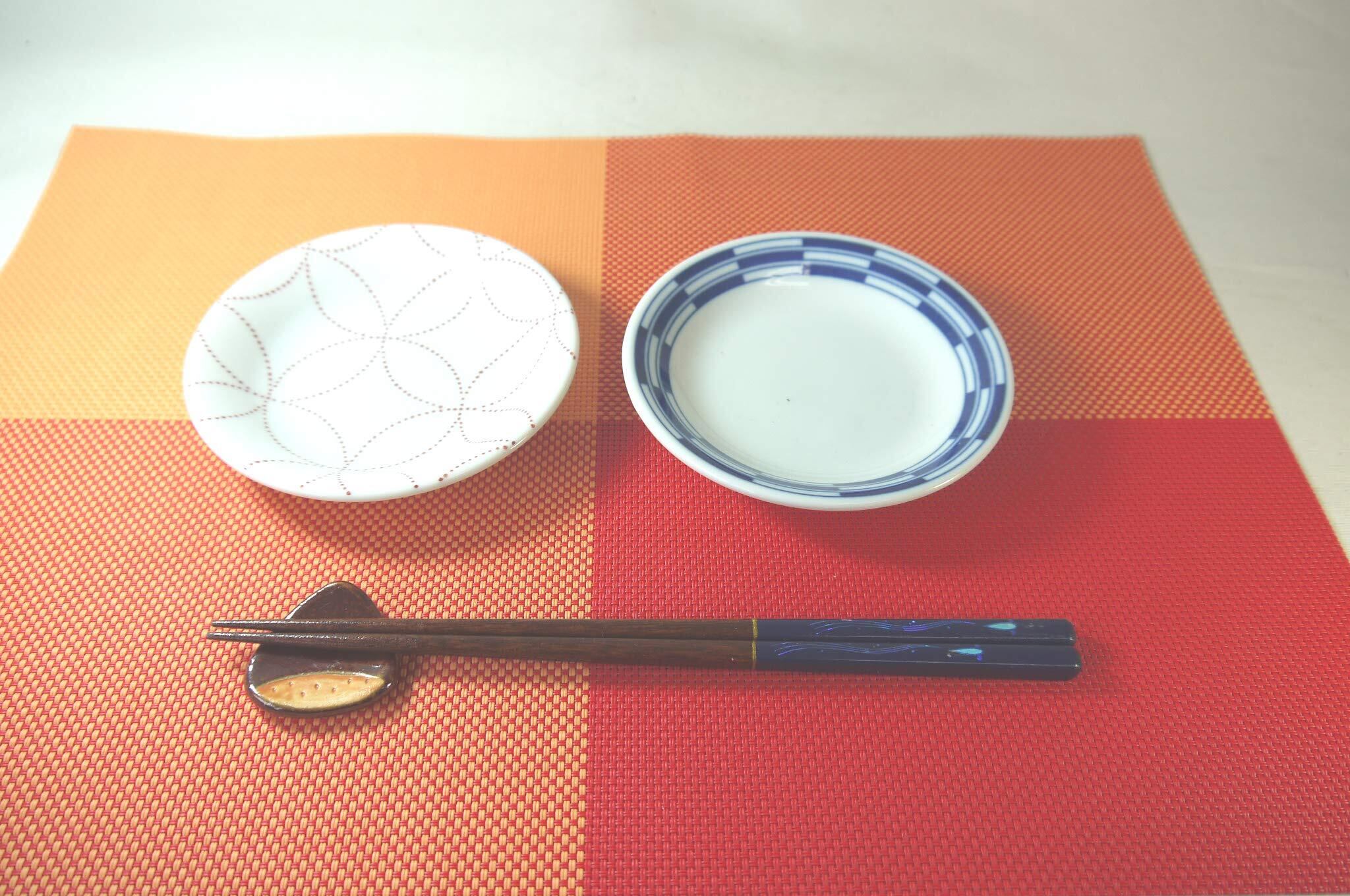 和と洋がマッチしたカラフルな取皿です。パーティーなど人が集う時に便利です。小皿以外は商品ではありません。