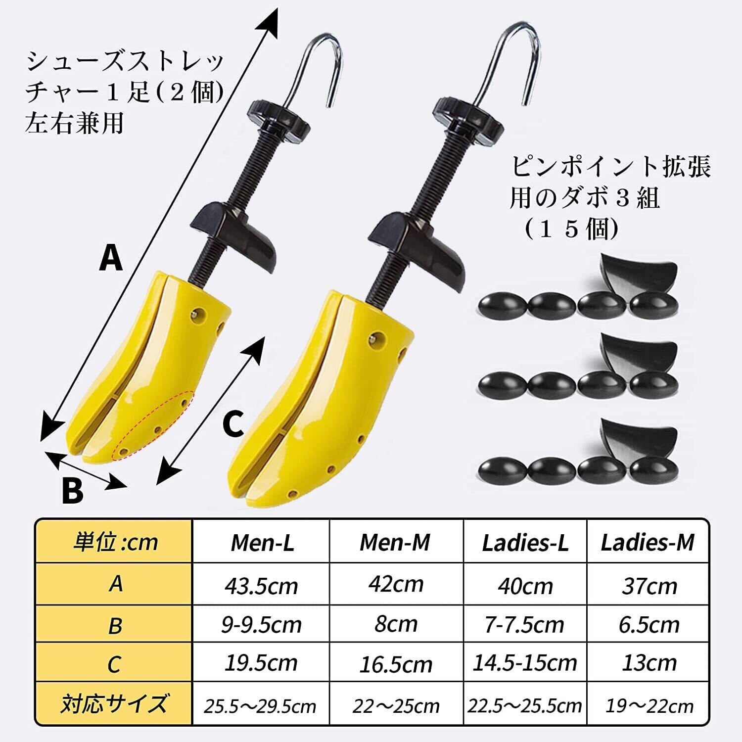 【ピンポイント伸ばし】拡張用のダボを差し込むと、特に伸ばしたい部分を伸ばすこともできます 。拡張用ダボが15個付属しております。ダボを使って、靴のピンポイントで広がり、足のまめや腱膜瘤の症状からの痛みを和らげます。