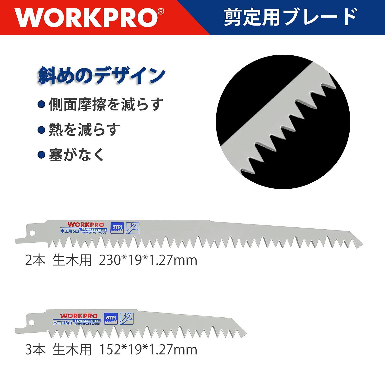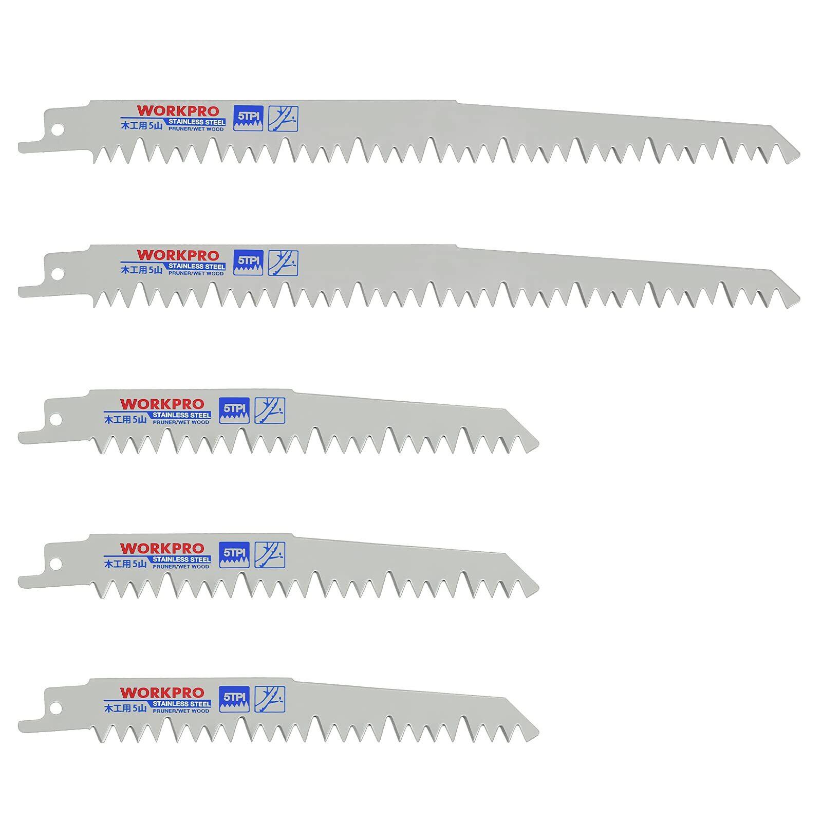 WORKPRO レシプロソー替刃 電気のこぎり替え刃 枝切り用 生木 枝打ち 果樹剪定 庭木剪定 230mm 152mm 5本組 5山