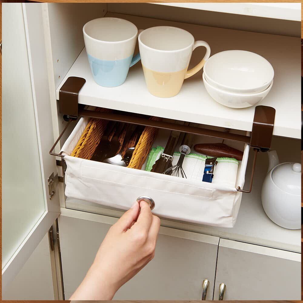 パターン(種類):2個組 テーブル下や棚の上部にできるすき間やデッドスペースを活用! 小物や見せたくない物などをスッキリ収納。 スライド式でサッと引き出せる! 引き出しに便利な指掛け穴付き。 キッチンの食器棚や本棚、下駄箱の収納にも。