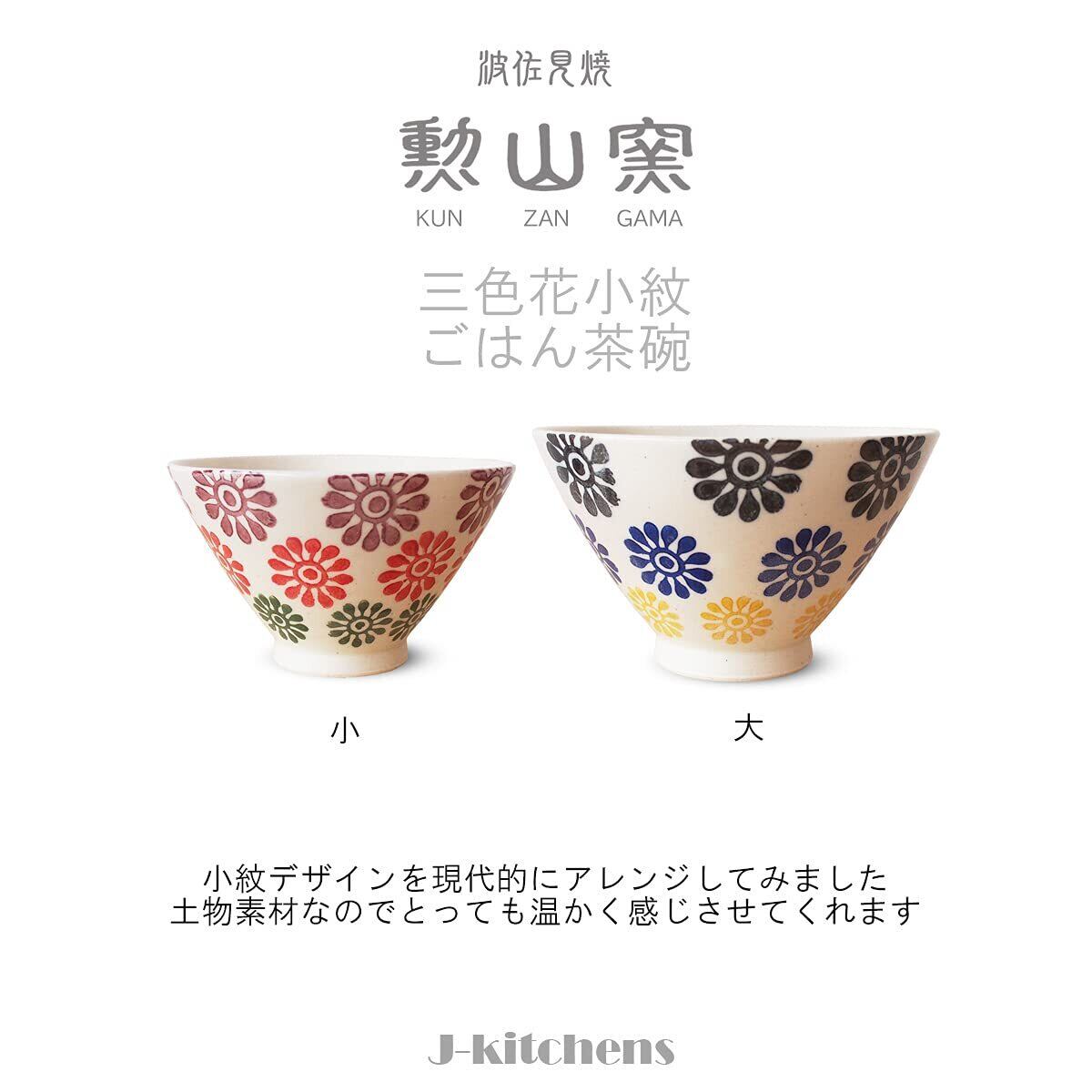 J-kitchens 勲山窯 茶碗 小 11.5cm 波佐見焼 日本製 花 小紋