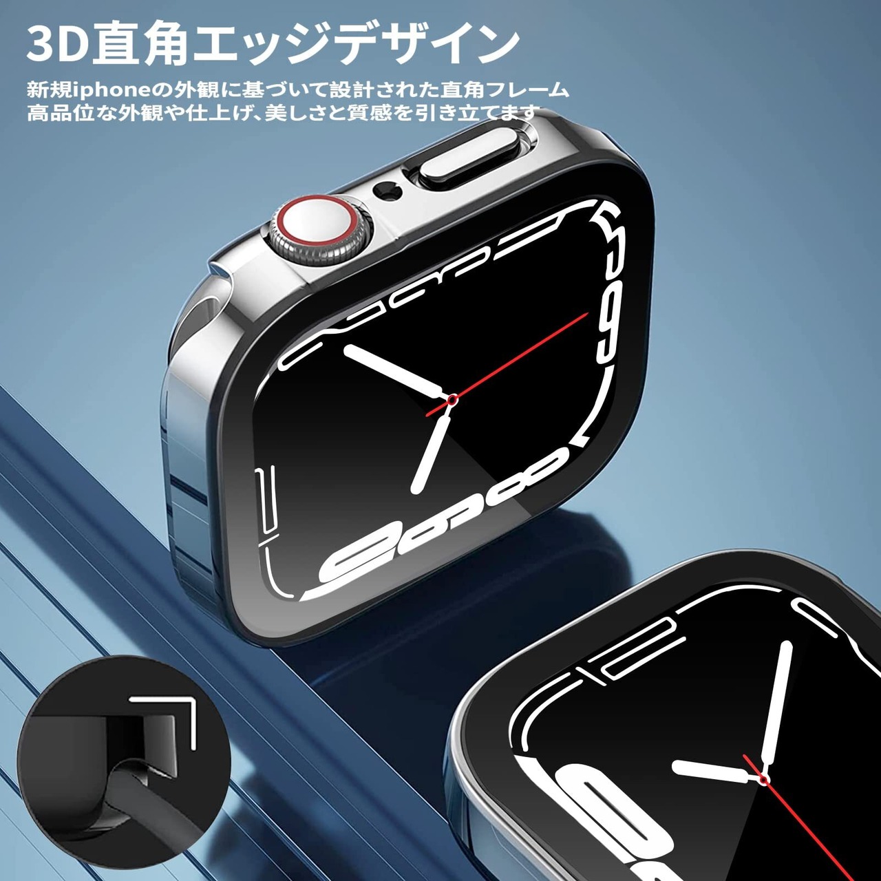 AMAPC for Apple Watch ケース Apple Watch ケース 対応 IP68完全防水 バンド 水泳・スポーツ専用 防水ケース 3D直角エッジデザイン Apple Watch Series 9/8/7 45mm対応 光沢のシルバー | BASE SHOP