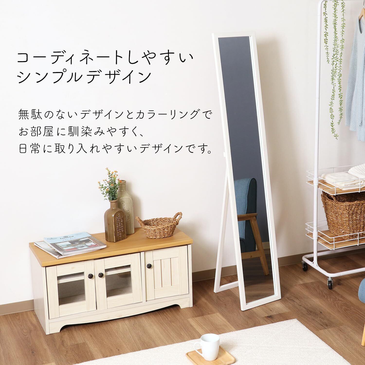 デザイン性、利便性どちらも兼ね備えた機能的なスタンドミラーです。