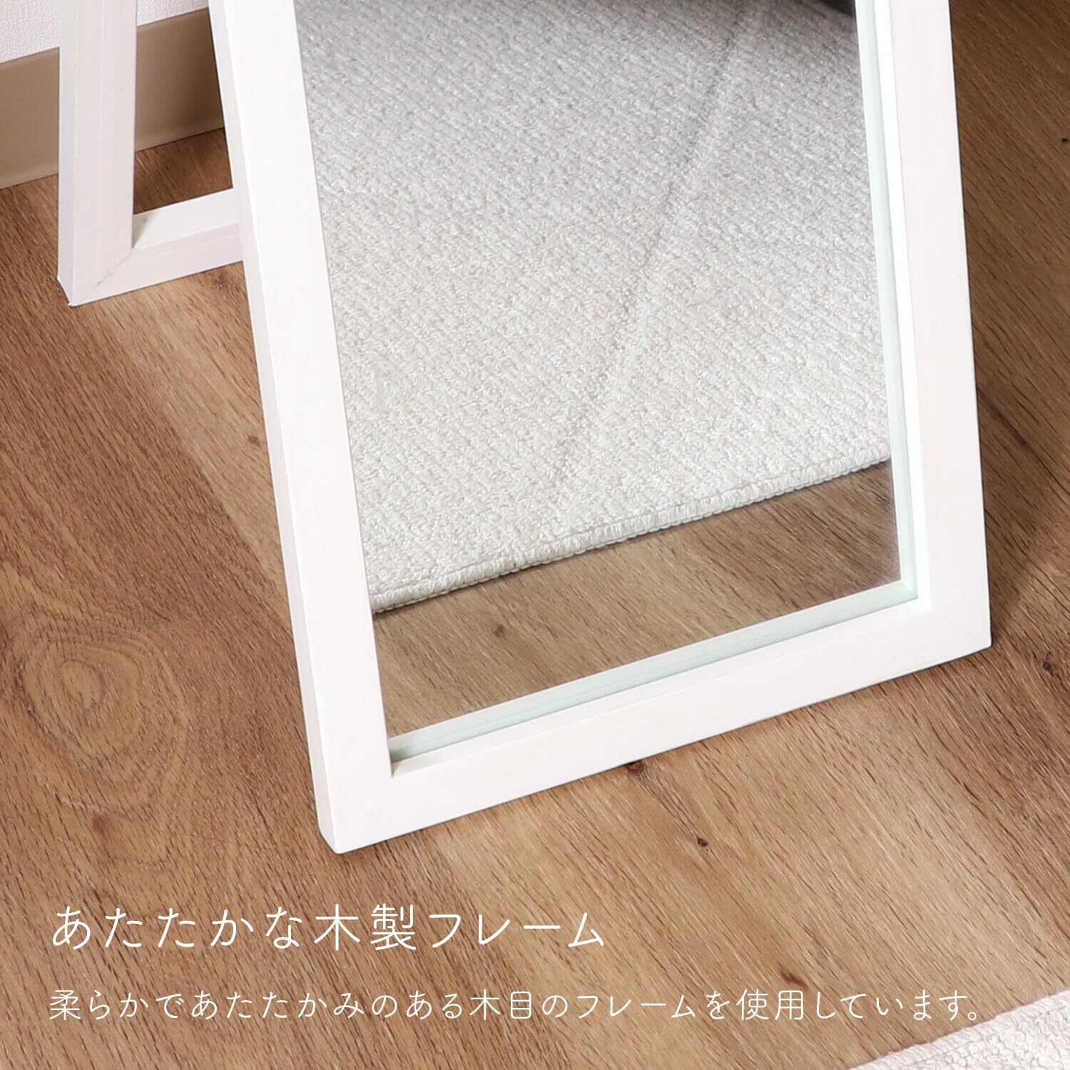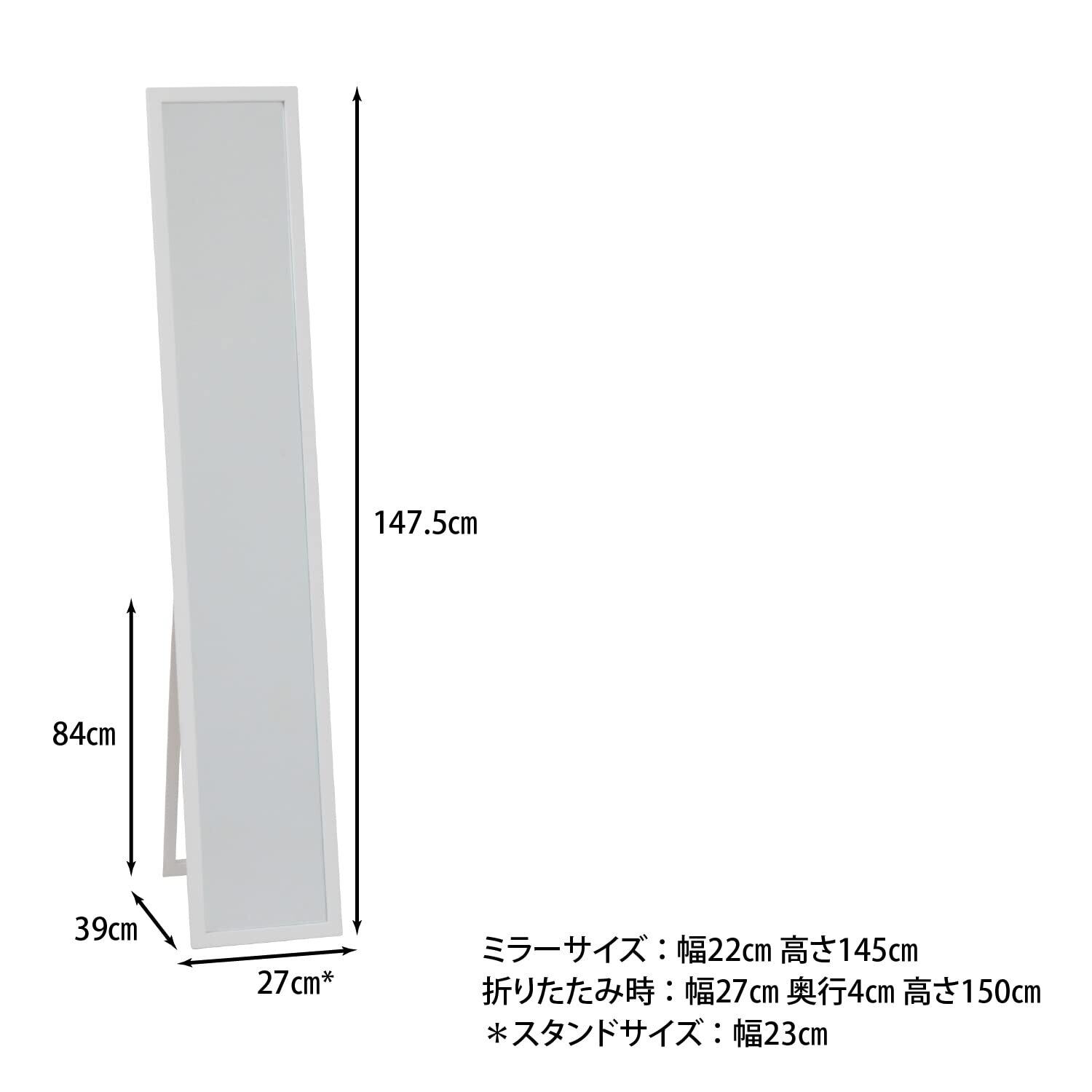 不二貿易 姿見 全身鏡 スタンドミラー 飛散防止加工 ルームミラー 木製 折りたたみ 一人暮らし 単身 幅27×奥行39×高さ147.5cm ホワイト 70120