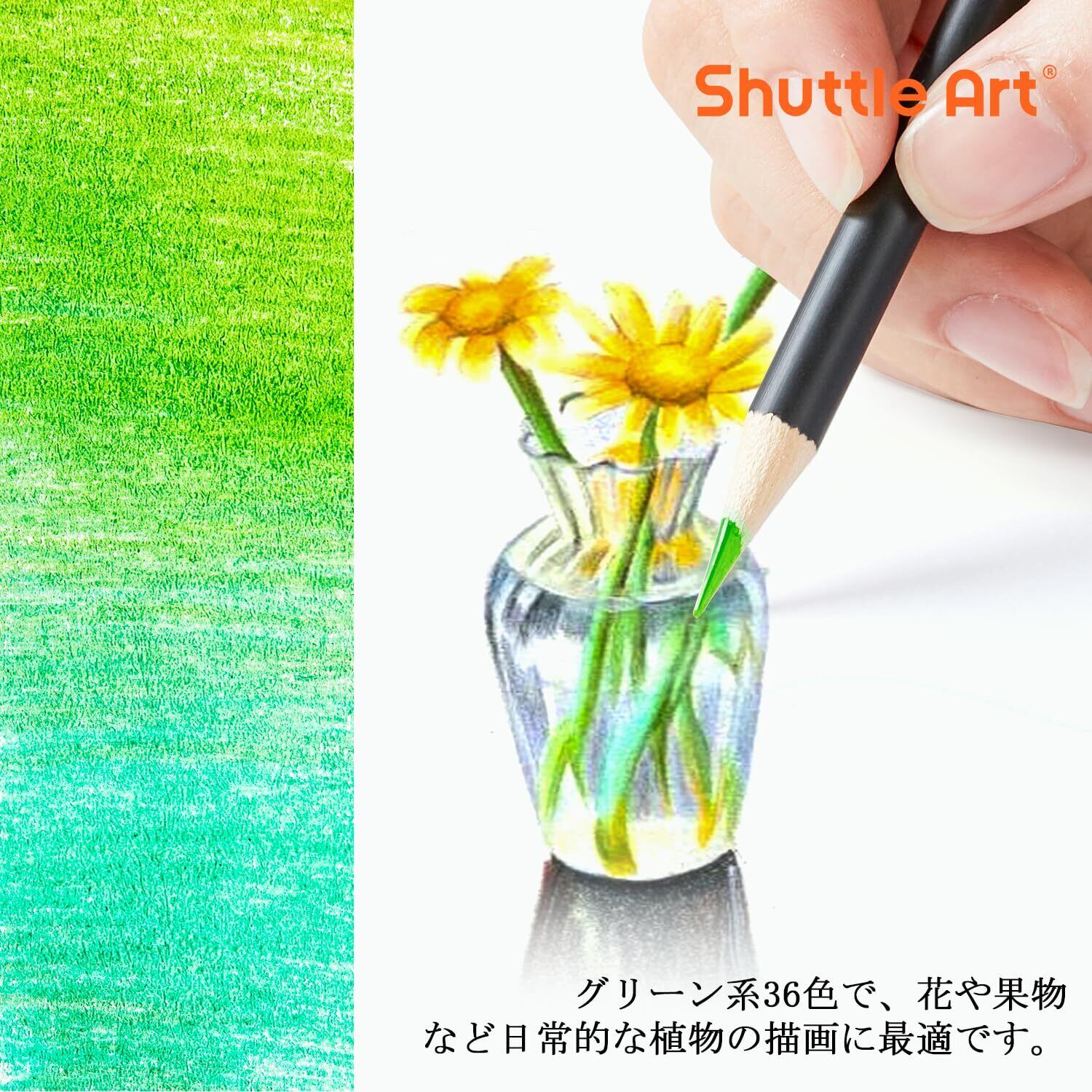 Shuttle Art 色鉛筆 36色セット グリーン系 緑 カラーペン ボタニカルアート 植物画 大人の塗り絵 イラスト デザイン スケッチ 落書き ケース付き 子供 初心者 入園・入学お祝い プレゼント