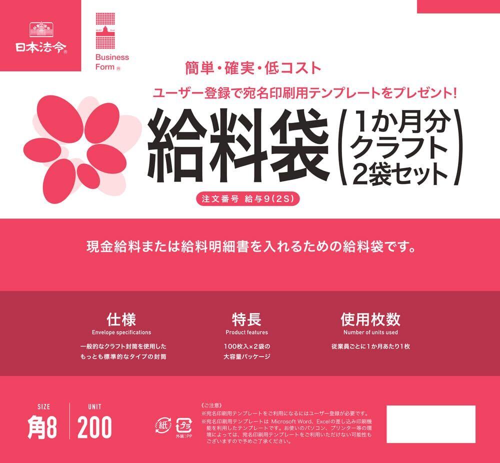 日本法令 給与袋(1ヵ月分・クラフト・2袋セット)給与9(2S)