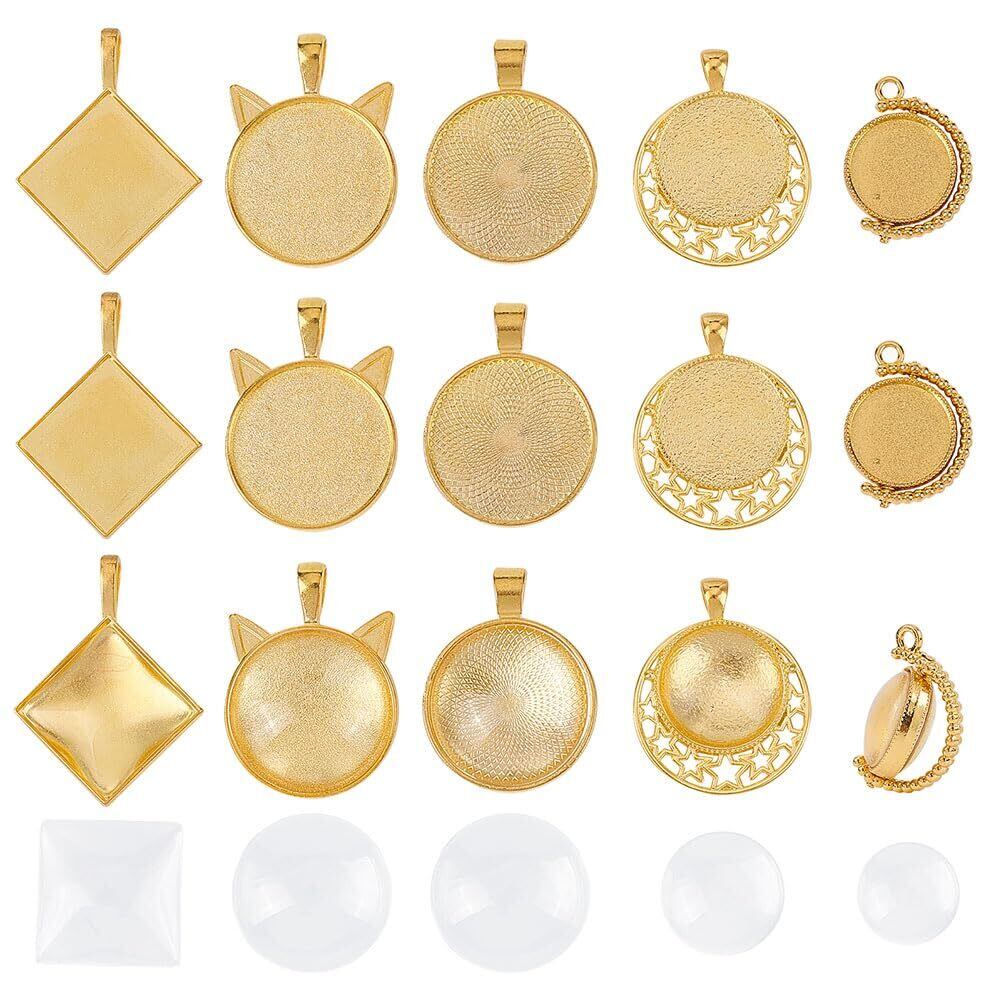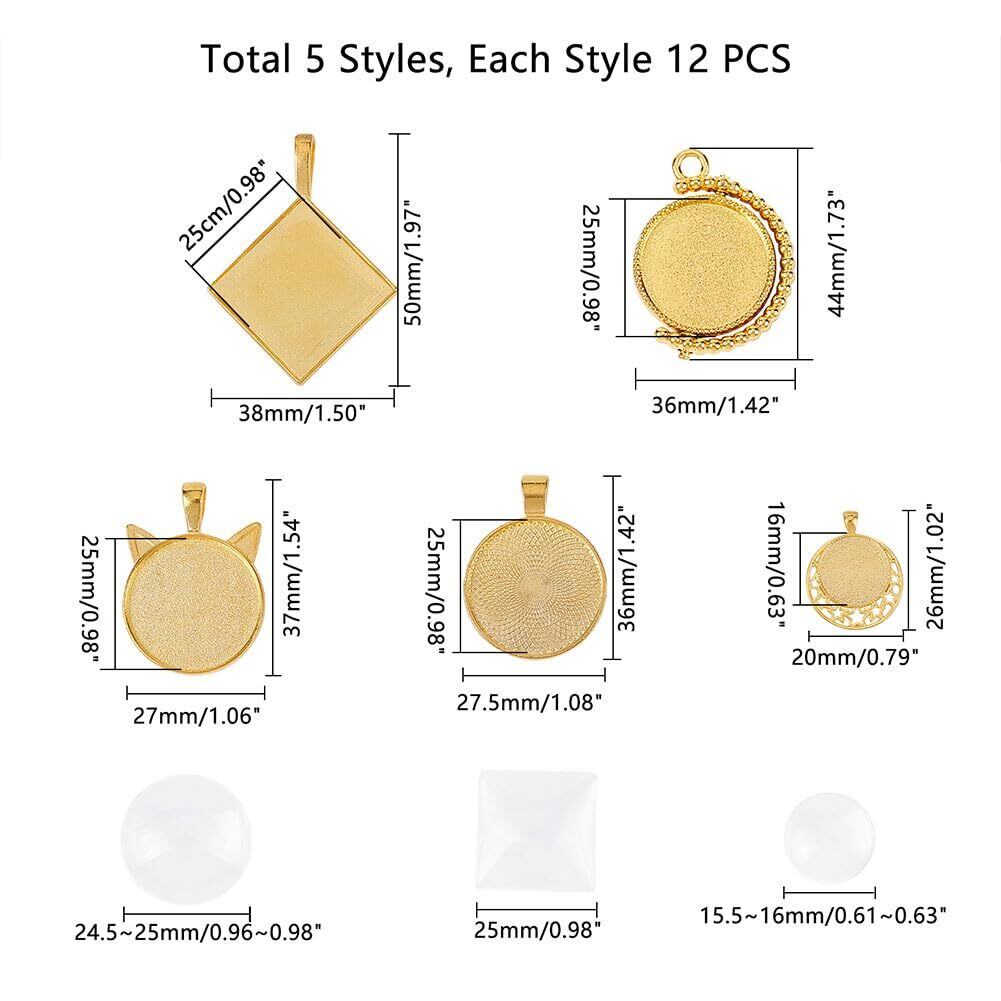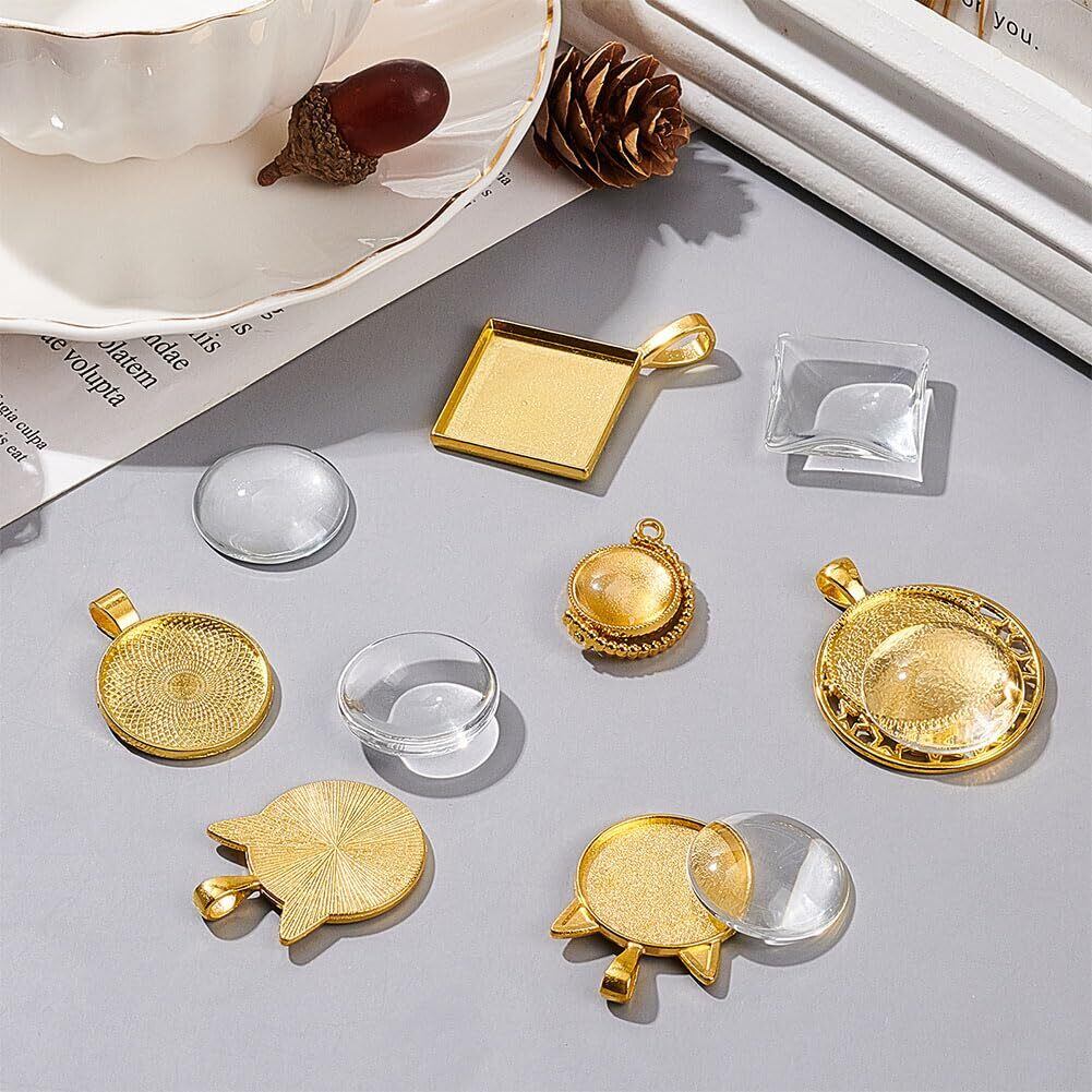 セット内容: 5種類のチャームは30個が付属し、各色は6個入りです。また、30個の透明なガラスドームカボションが付属しています。合計60個で、ジュエリーペンダントの作成に十分な量です。