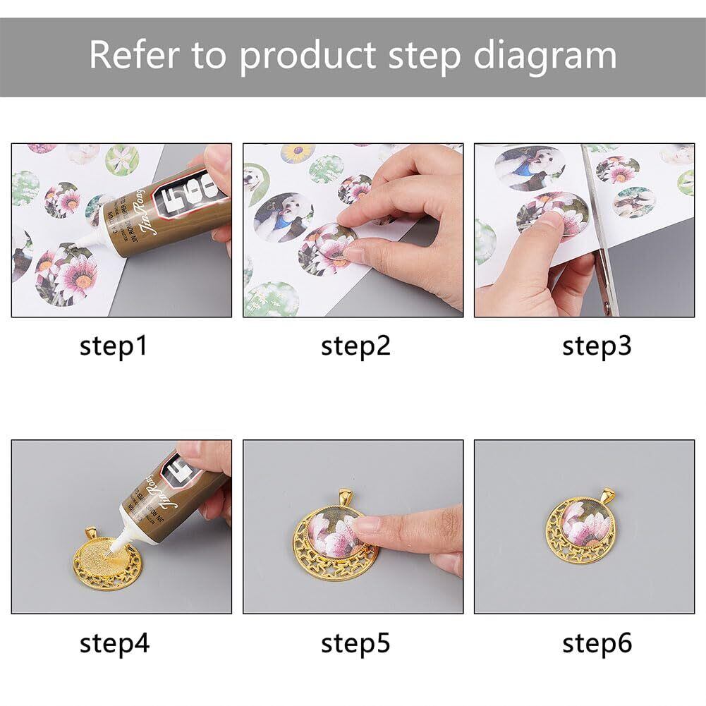 使いやすい: お好みの柄をミール皿に貼り付け、透明なガラスのカボションで覆い、コードやチェーン(別売)に吊るすだけで、綺麗なペンダントが完成できます。