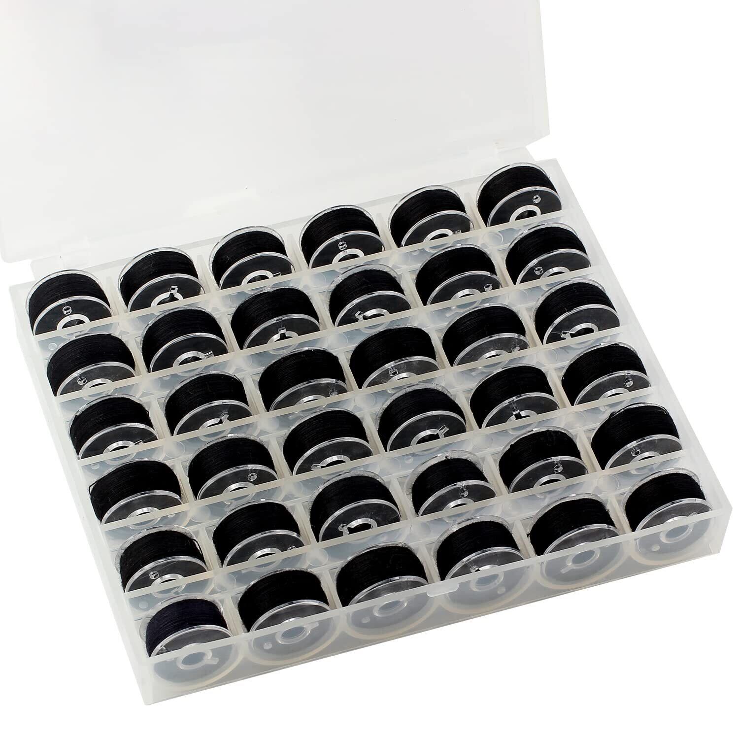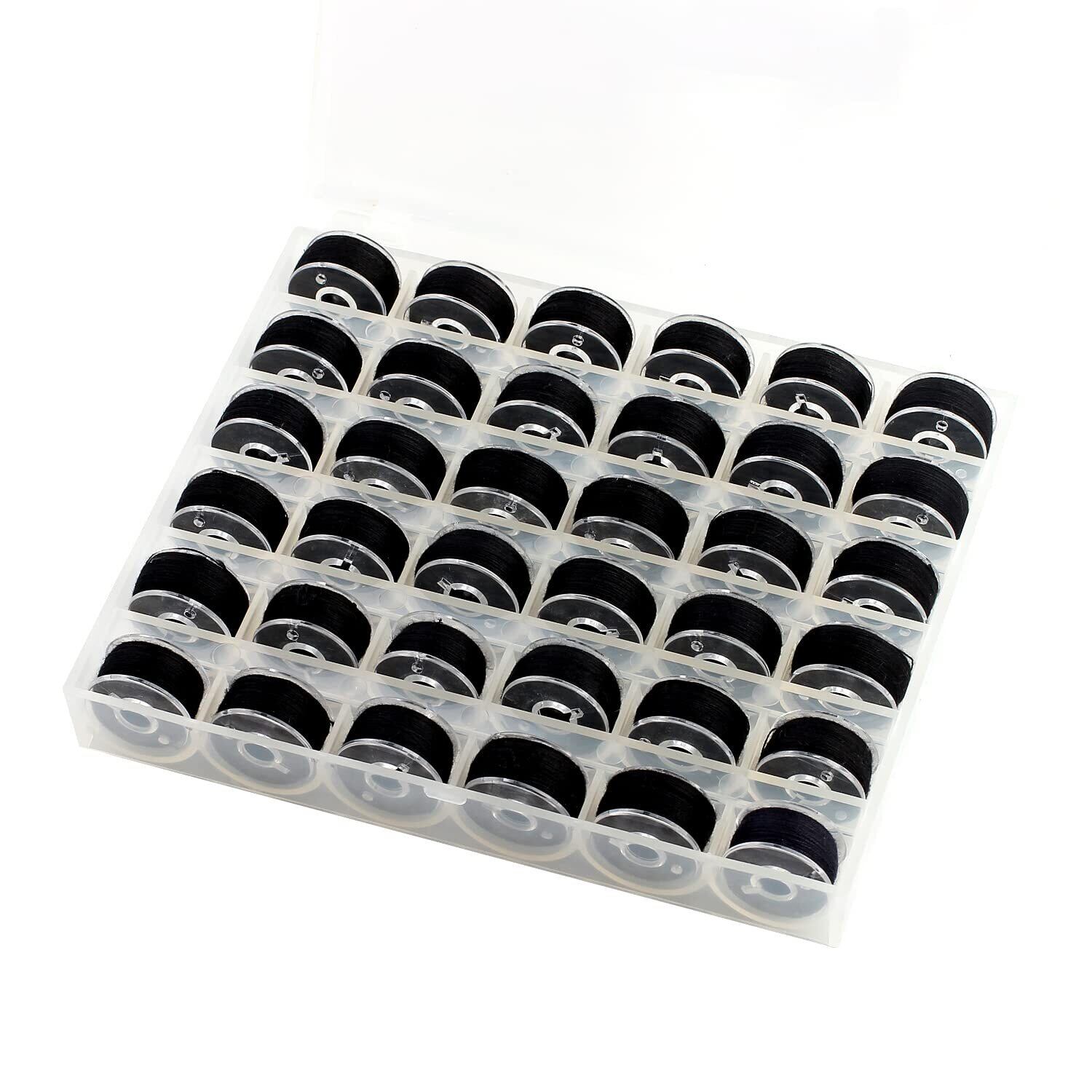 Windman 縫い糸付きボビン 黒 36粒入り 家庭ミシン用下糸 60番 高さ11.5mm 対応可 刺しゅう用下糸 ボビンホルター下糸 ボビンボックスセット ミシン糸付きボビンボックスセット 透明ボビン 収納ボックス 家庭用 実用的 DIY用 縫製ボビン (黒)