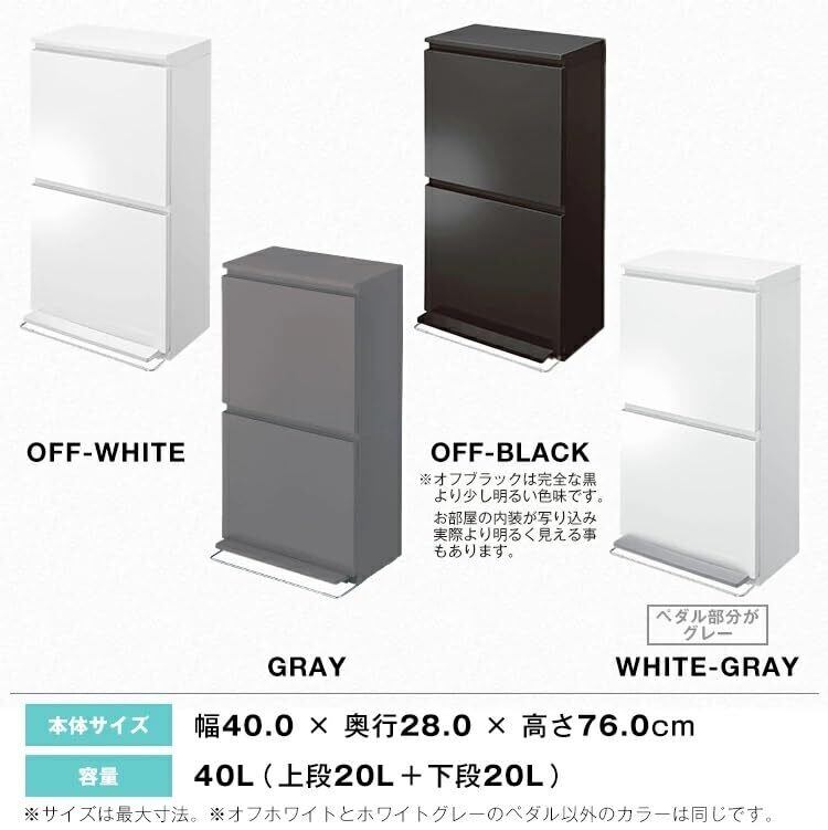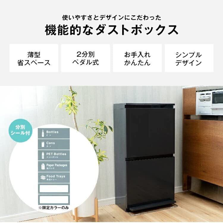 アスベル フタ付きゴミ箱 リビング 40L ペダル2段ワイド 丸洗い可 黒 奥行スリム A6887