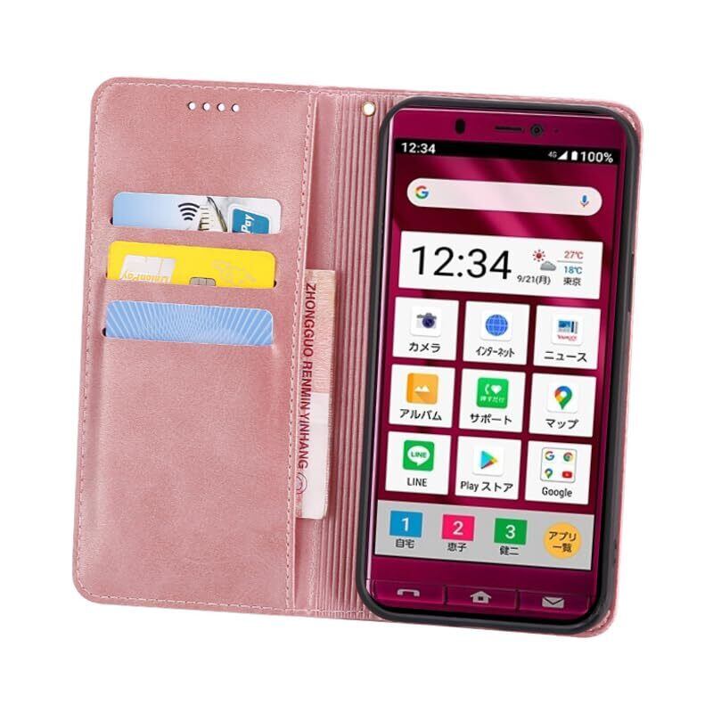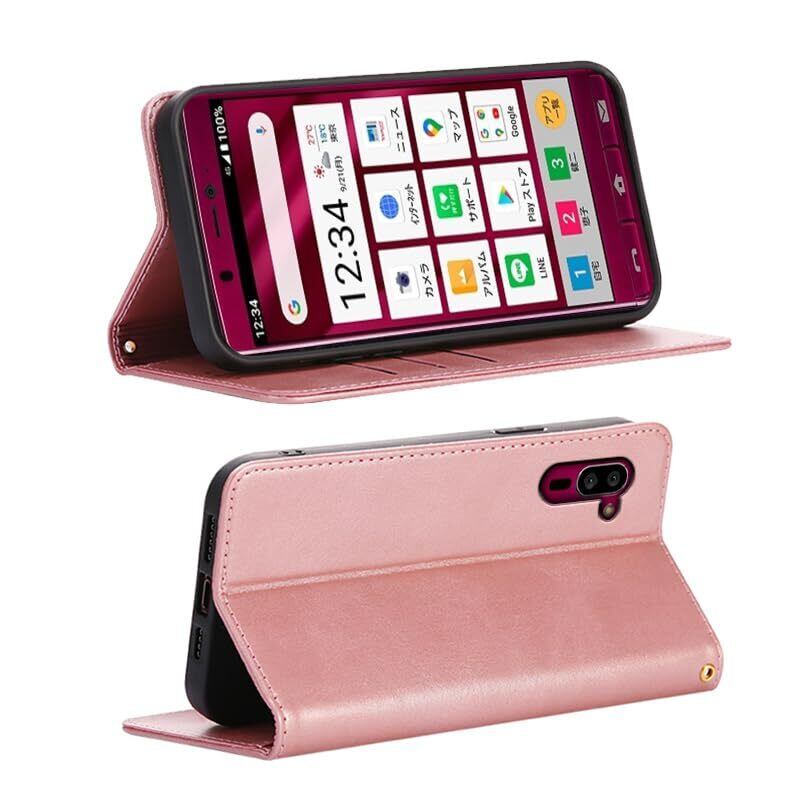 適用 シンプルスマホ5 ケース 手帳型 SoftBank A001SH 用/Simple Sumaho5 用 手帳型ケース カバー PUレザー カード収納 財布型 耐衝撃 ケース マグネット スタンド機能付き 5色 (シンプルスマホ5 用/SoftBank A001SH / Simple Sumaho5 用 ケース 手帳型) (ライトローズゴールド) | BASE SHOP
