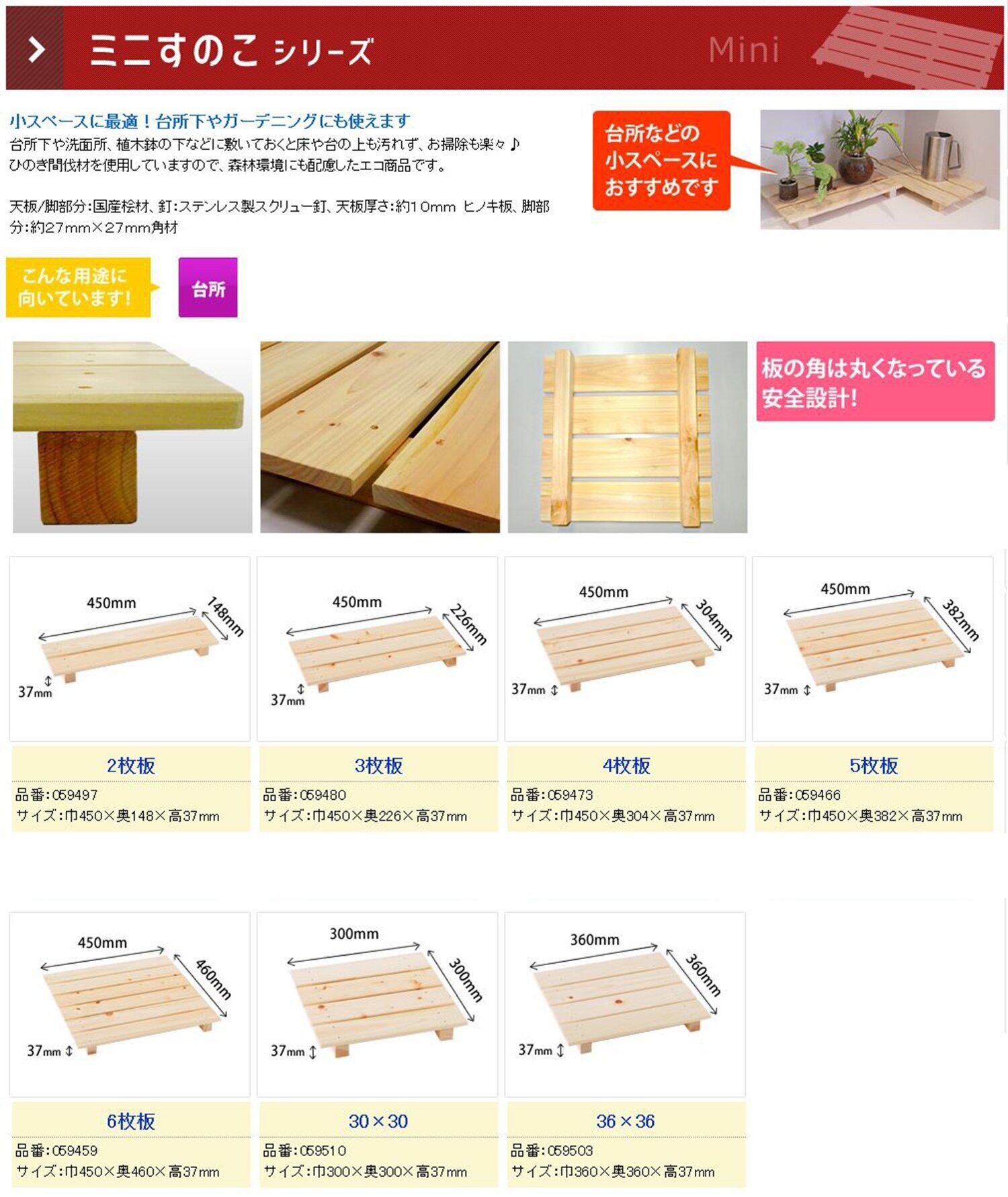 国産桧材にこだわり、ひのきが大好きなお客様に自信を持ってオススメできる、品質ピカイチ! の「ひのきすのこシリーズ」