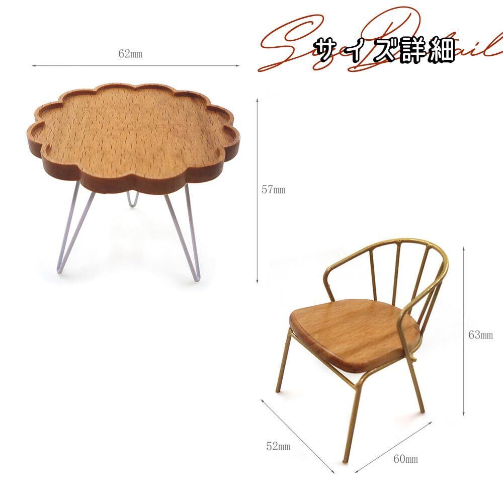 【サイズ】 [ テーブル ] 直径6.2×高さ5.7cm [ チェア ] 幅5.2×高さ6.3×奥行6cm 【セット内容】 テーブル×1、チェア×2 【 素材 】 ウッド