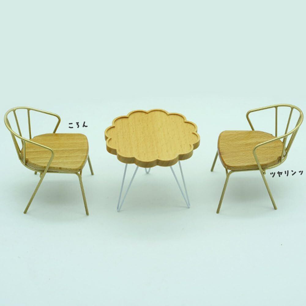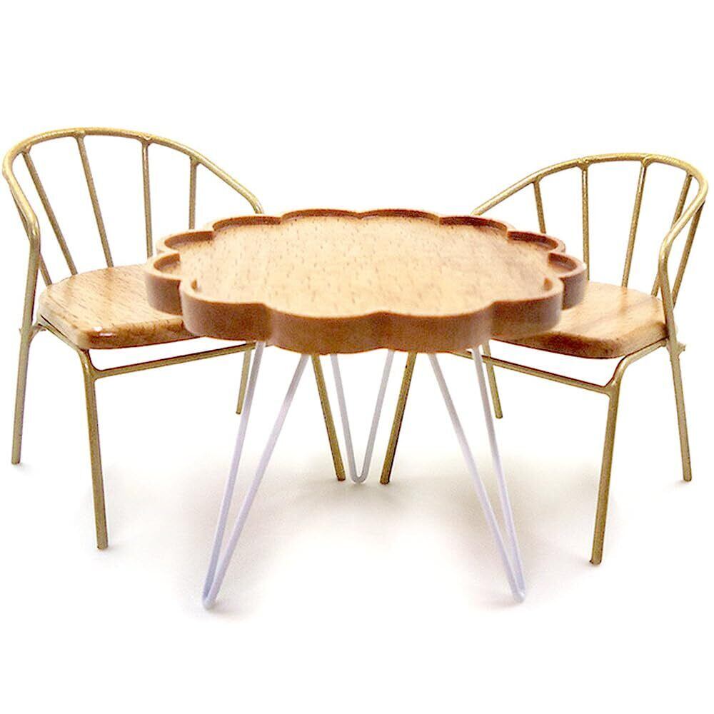 moin moin ミニチュア 家具 1/12 1:12 スケール 家具 テーブル & イス 3点セット / ドールハウス 一人掛け カフェ シングル レトロ アンティーク ビスケット みたい ブラウン ウッド 木製 ドール 人形 雑貨 2502mini64