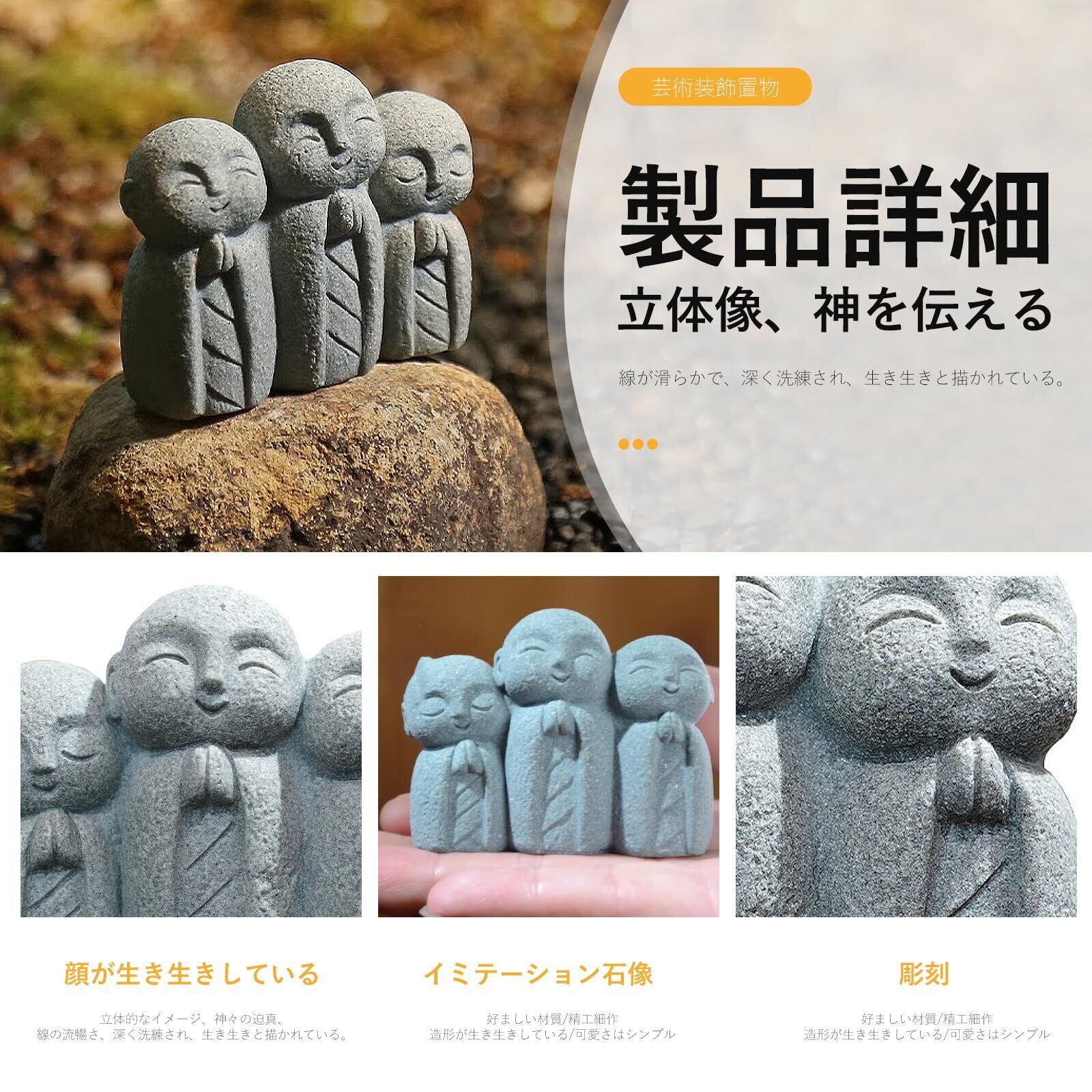 ❣️【可愛いお地蔵 セット内容】A:子供のように無邪気であるお地蔵様;B:愿いをかなうお地蔵様。C.美しい祈りのお地蔵様。手のひらサイズお地蔵様の置物3点セット。具体的なスタイル参照画像。カラー:グレーシアン