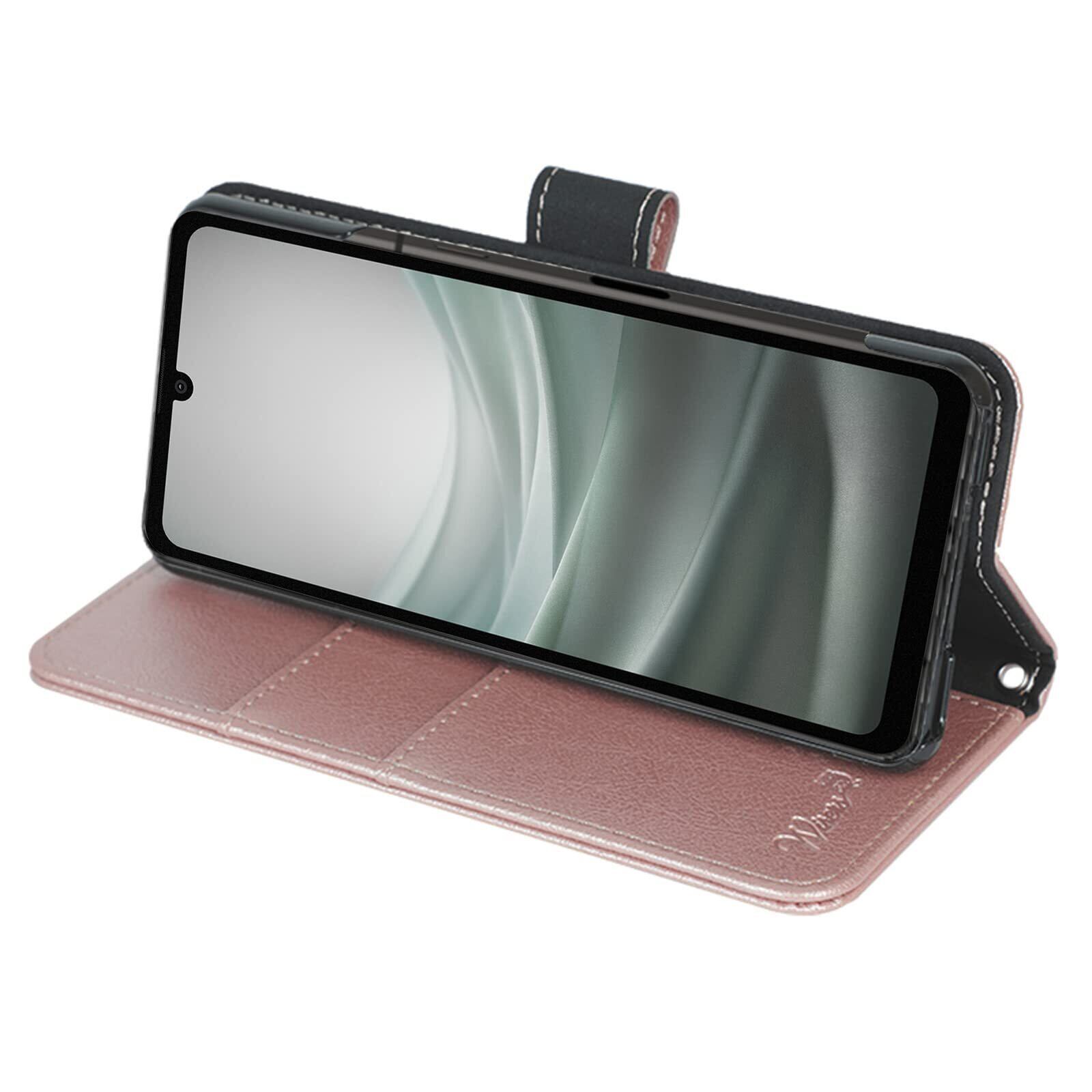 wisers AQUOS sense7 SH-53C / SHG10 対応 手帳型スマホケース (ローズゴールド) 牛革調PUレザー (カードホルダー/スタンド機能付き) ストラップ 2種付き (ハンドストラップ/ネックストラップ)