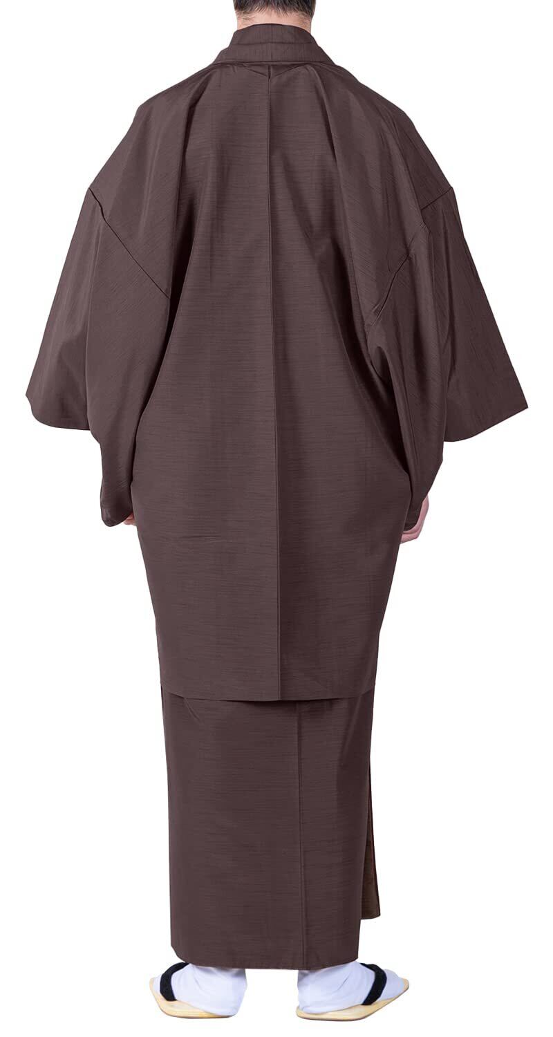 メンズ着物と羽織の2点セットです。紬風の生地を使用しており、普段着からセミフォーマルまでお召し頂けます。お食事会、ショッピング、観劇、パーティなど、幅広い場面で着用いただけます。