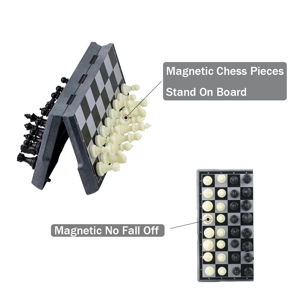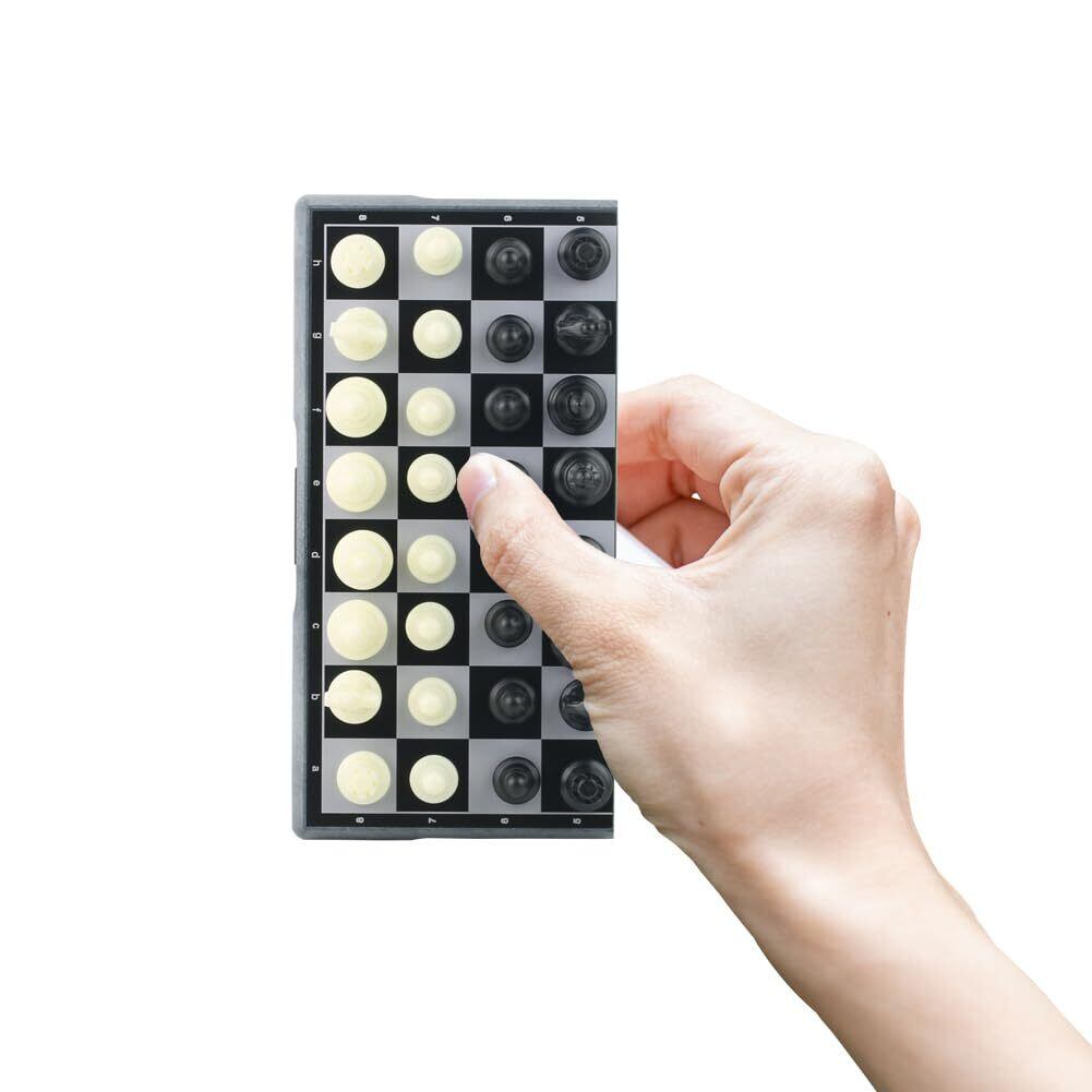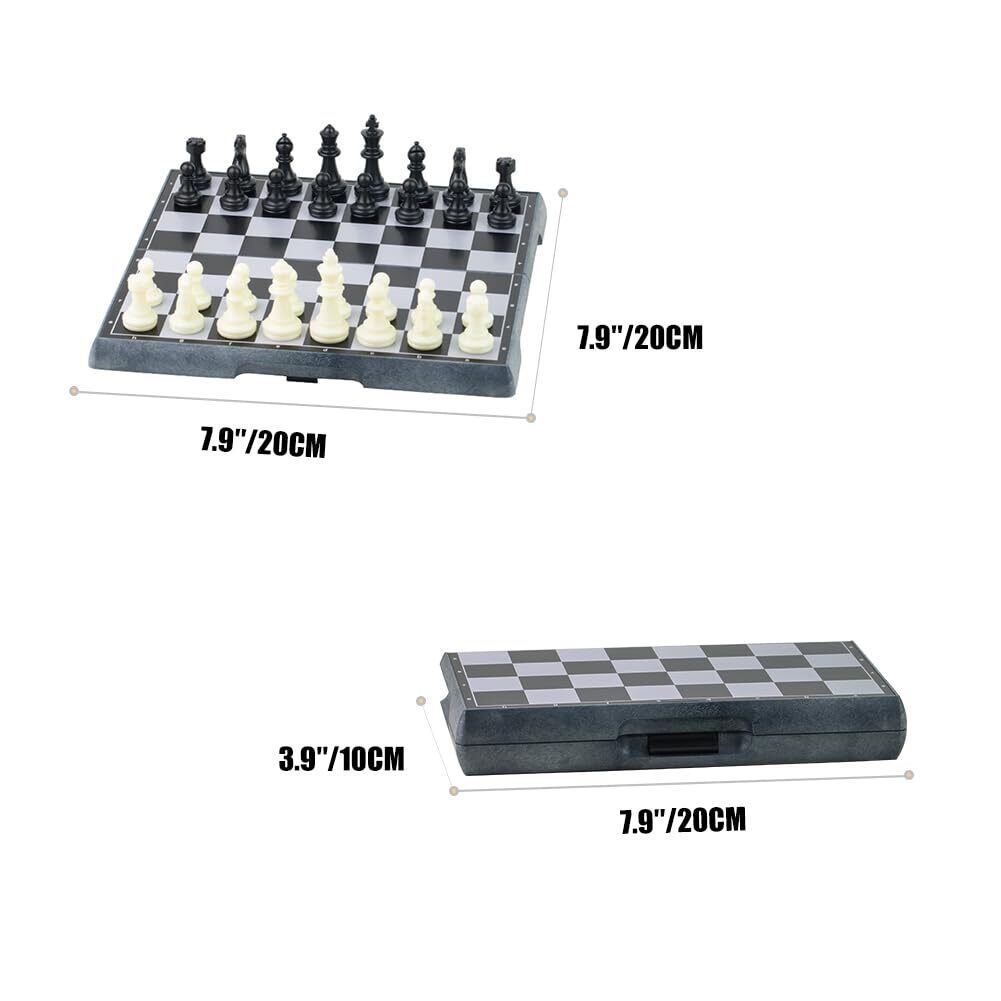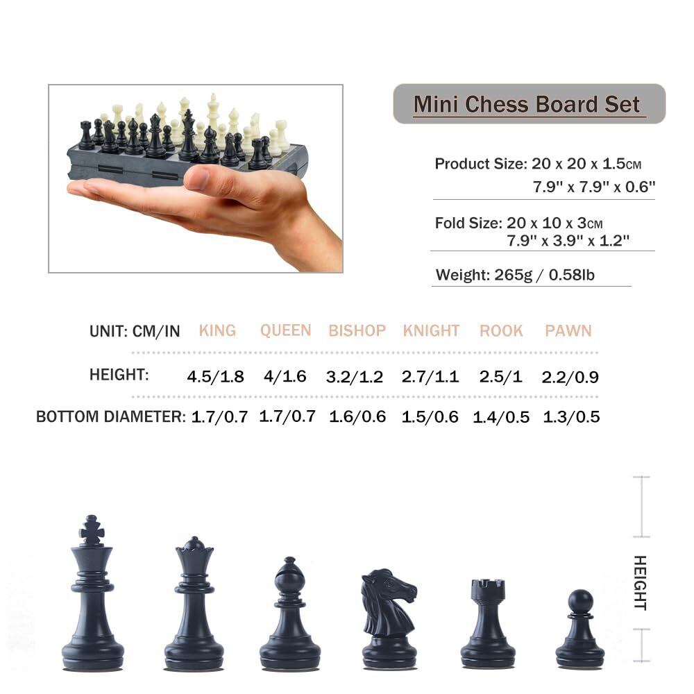 チェスセット Travel Chess Set マグネット式 黒と白の駒 折りたたみ チェスボード 収納便利 大人 子供 旅行 入門用 (20×20cm)
