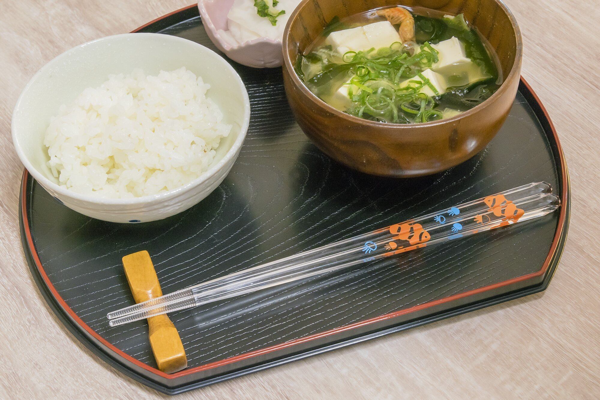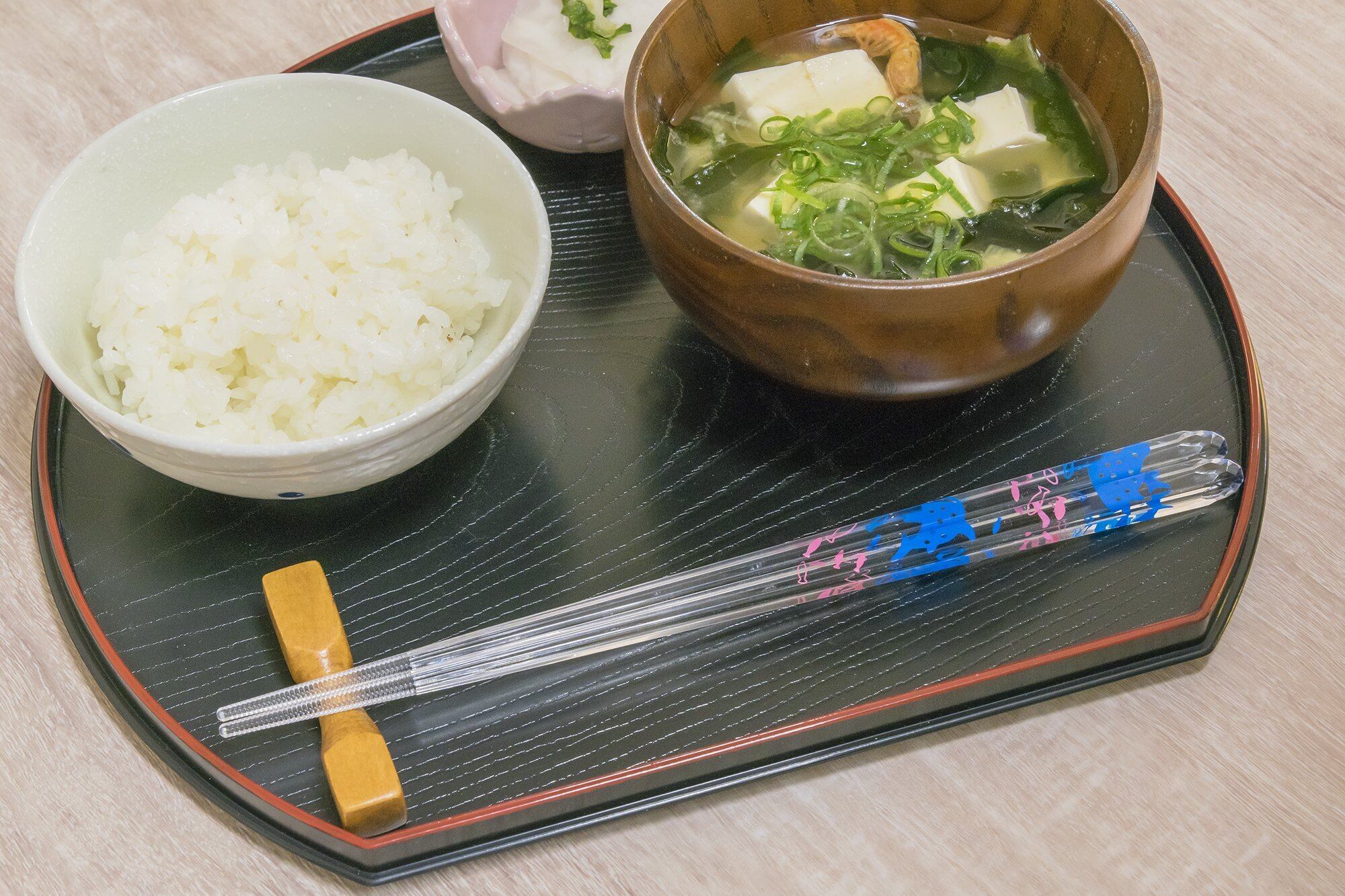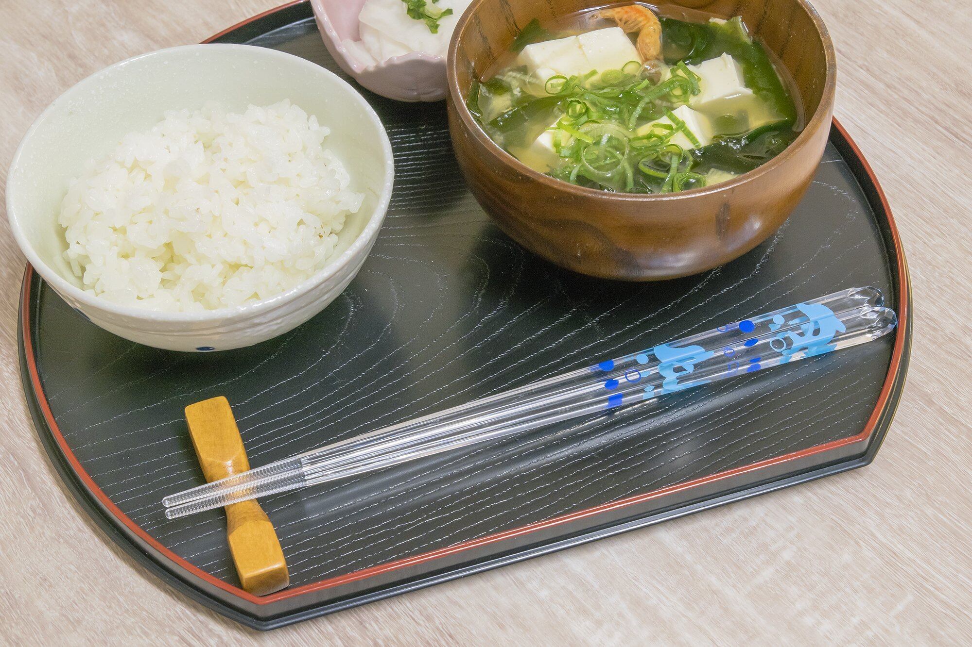 水色で透明感あふれるイラストがクリア箸に生かされ、爽やかな一時を食卓に与えてくれる。