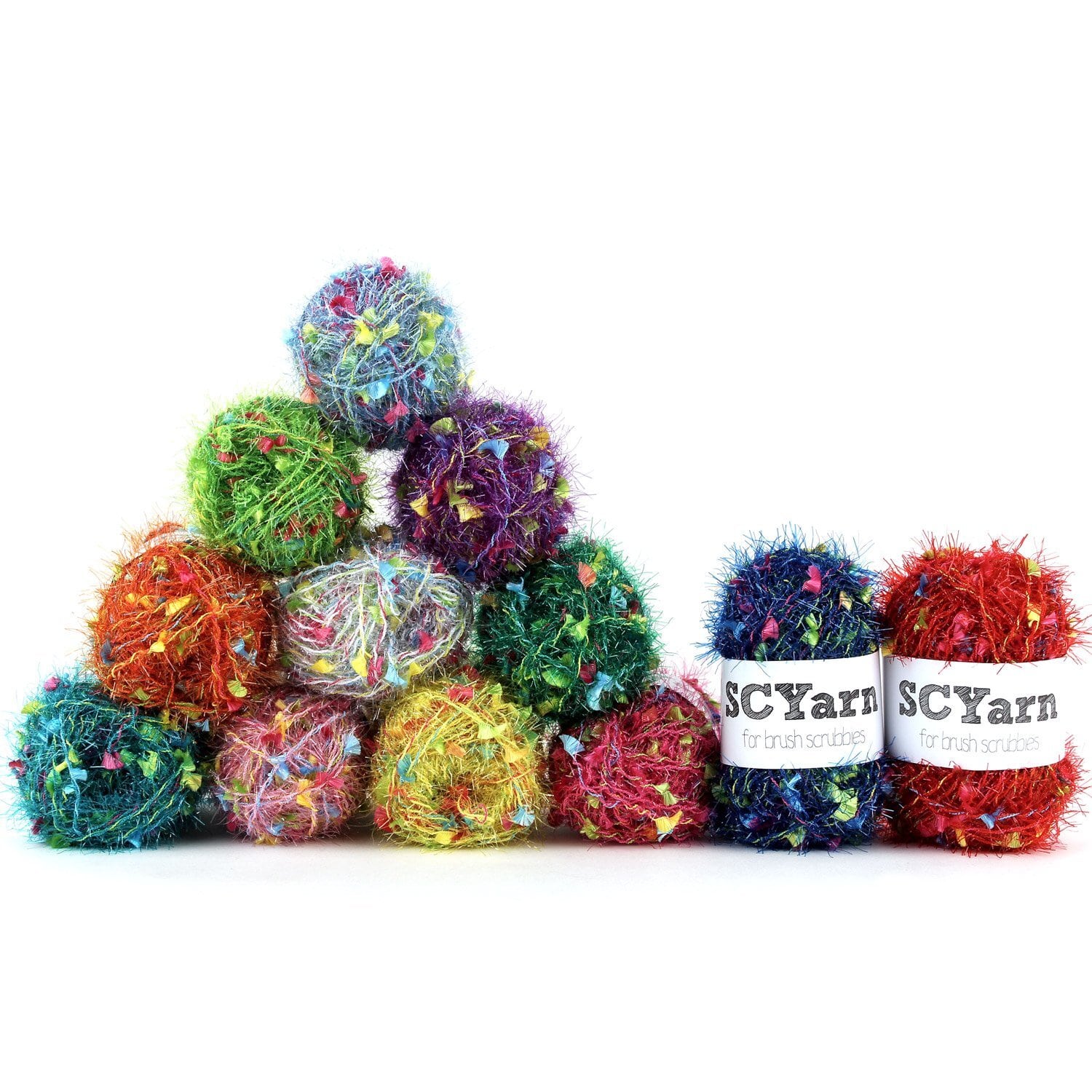SCYarn 韓国産たわし糸12色セット 1玉当たり約75m 計400g、900m ポリエステル毛糸 (ブラシ捺染)