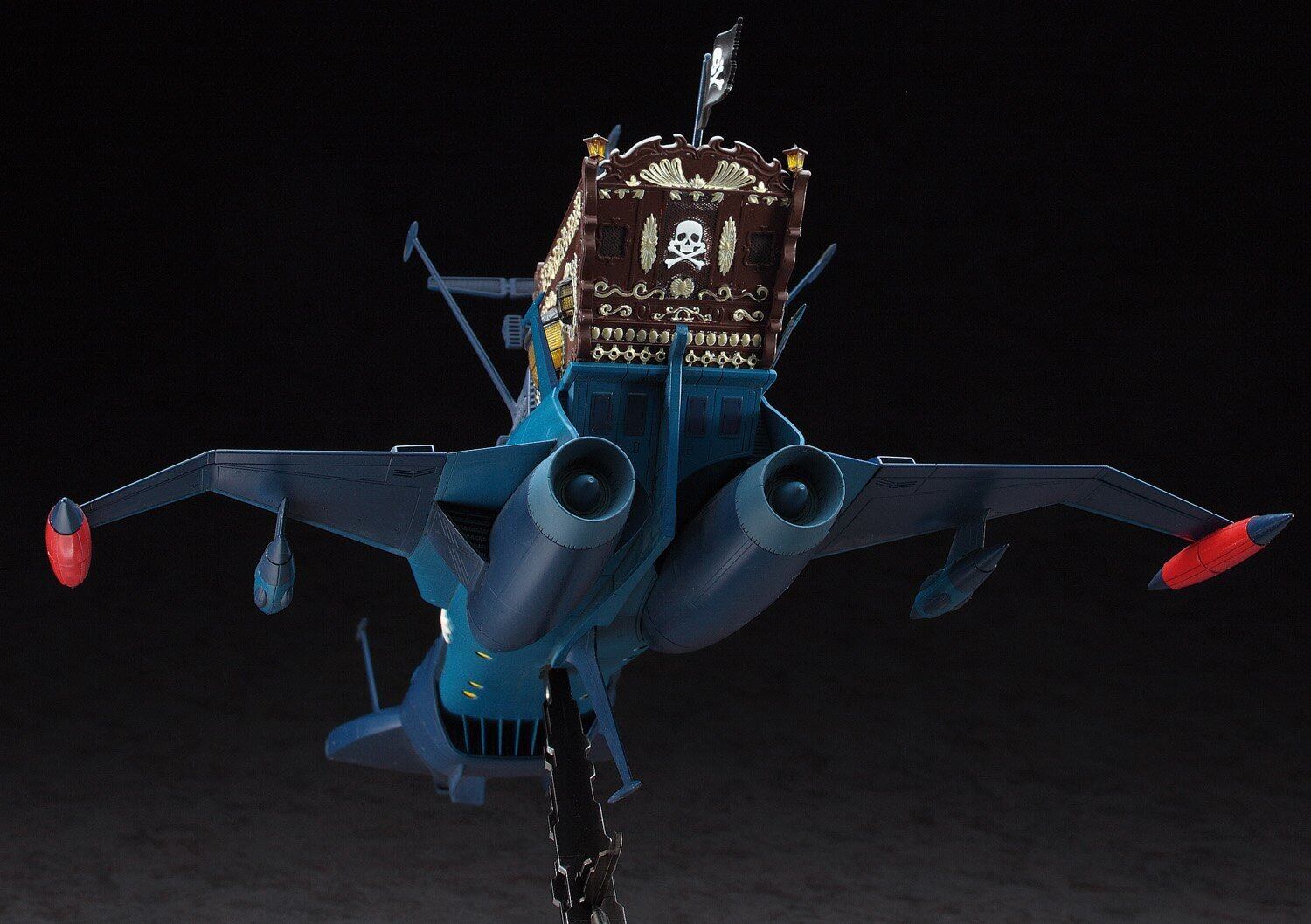 TVアニメ「宇宙海賊 キャプテンハーロック」よりアルカディア号を完全新金型でキット化します。アルカディア号は複数建造されており、本艦は二番艦に位置づけされています。 (ちなみに前回キット化した「銀河鉄道999 劇場版」の髑髏艦首タイプは三番艦にあたります。) キットは、なるべくパーツの合わせ目が目立たないパーツ分割を採用。船体はサポートを挟み込む設計によ り、確実な組み立てと強度を確保しています。複雑なディテールが集中する艦橋は、スライド金型を使用しパーツを一体成形。三連装パルサーカノン (主砲) も砲身をスライド金型で開口。3本の砲身が独立して上下方向に可動し、砲塔は旋回可能。スペースバスター (速射砲) も上下方向に可動。艦 首のラムは部品の差替えにより再現。付属の展示用スタンドは支柱部分にトチローの墓標をイメージしたデザインを採用。成形色は、ブルー、ダークブ ルー、ブラック、ホワイト、レッド、ブラウン、クリアーイエローの7色の予定。ボーナスパーツとして、同スケールの艦載機「コスモウイング」が2 機付属。艦首や船尾楼のレリーフ彫刻に対応したデカールが付属。パッケージイラストは加藤直之 氏が担当します。