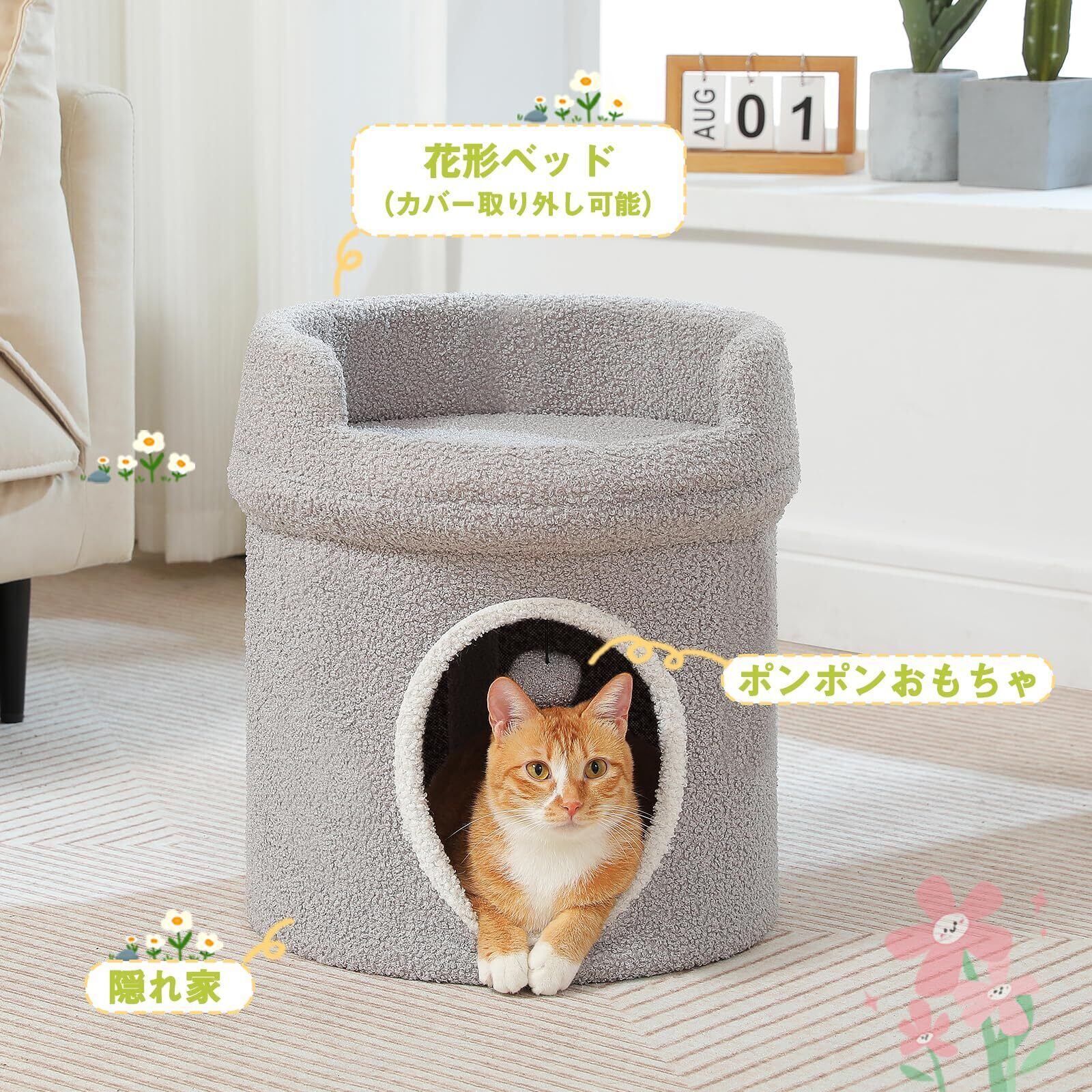 PAWZ Road 猫 ハウス ペットハウス 猫ベッド 屋根付き キャットタワー オシャレ ペット階段 小型犬 猫ちぐら オオガタネコヨウ 猫ドーム 猫ハウス 室内 家 小屋 隠れ家 低い 猫タワー ミニ 座れるキャットハウス 猫 テント 夏 人気 シニア - 高さ40cm Mサイズ 1階 グレー