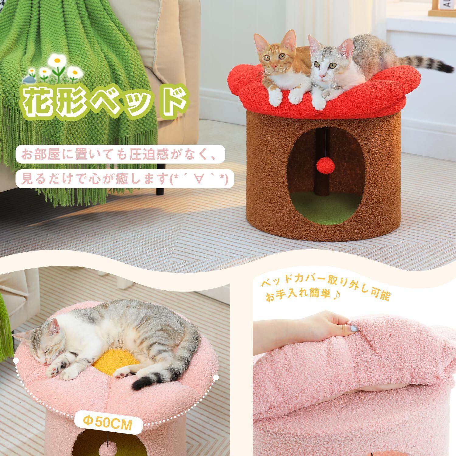 【大きめなベッド】直径約40cmもありますので、大型猫ちゃんにも使用可能!カバーを外してお手入れもとても簡単!