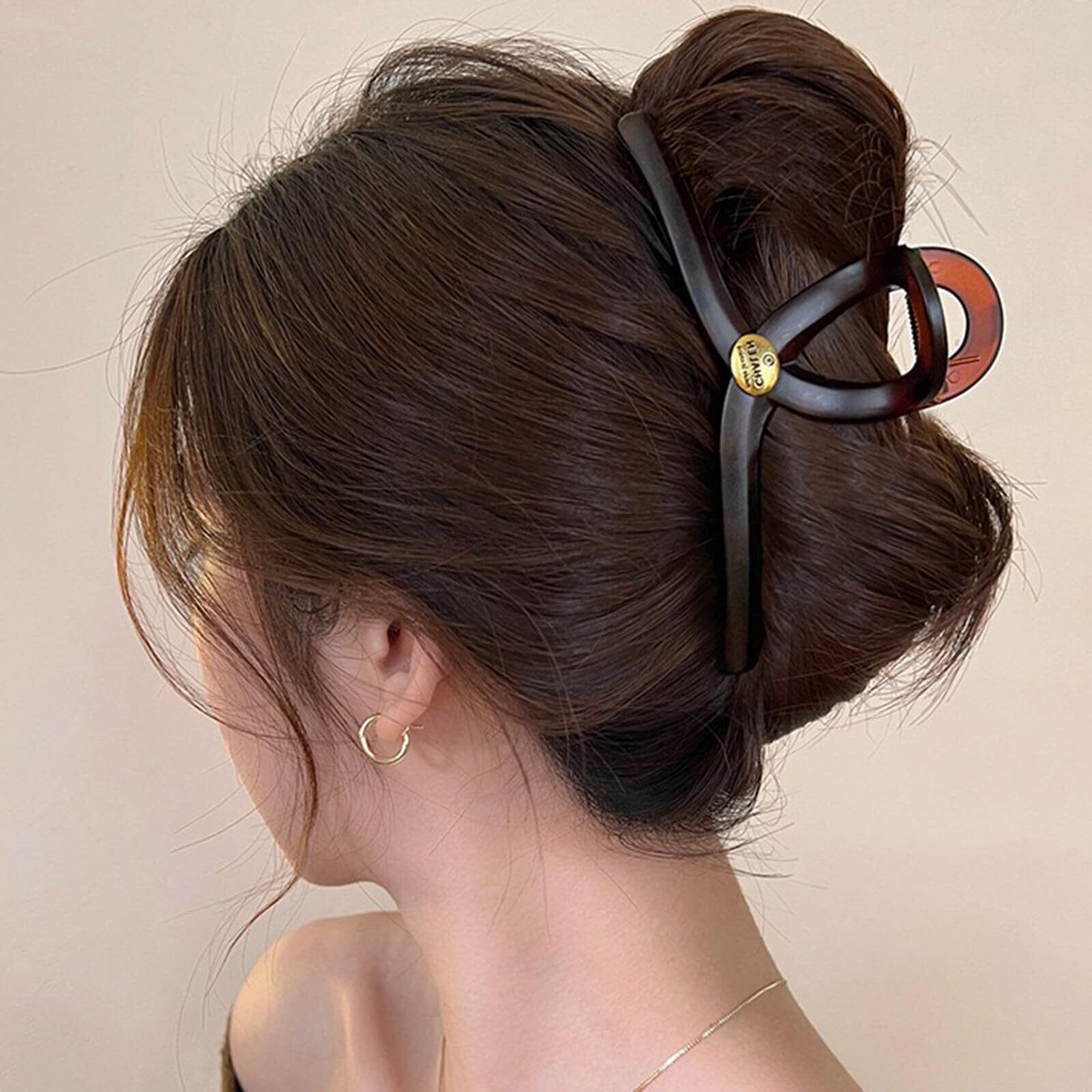 Briskyjp ヘアクリップ 大きめ 13cm しっかりとまる クリップ バンスクリップ ヘアアクセサリー お風呂 バナナクリップ 大人向け 韓風 シンプル オフィス レディース 可愛い 髪留め 髪飾り PC樹脂 軽量 毛量多い方に ブラウンゴールド | BASE SHOP