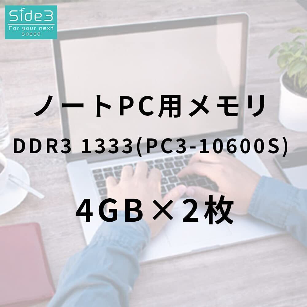 Side3 ノートPC用 メモリ PC3-10600 (DDR3-1333) サムスン チップ搭載 (4GB x 2枚) メモリ増設 so-dimm
