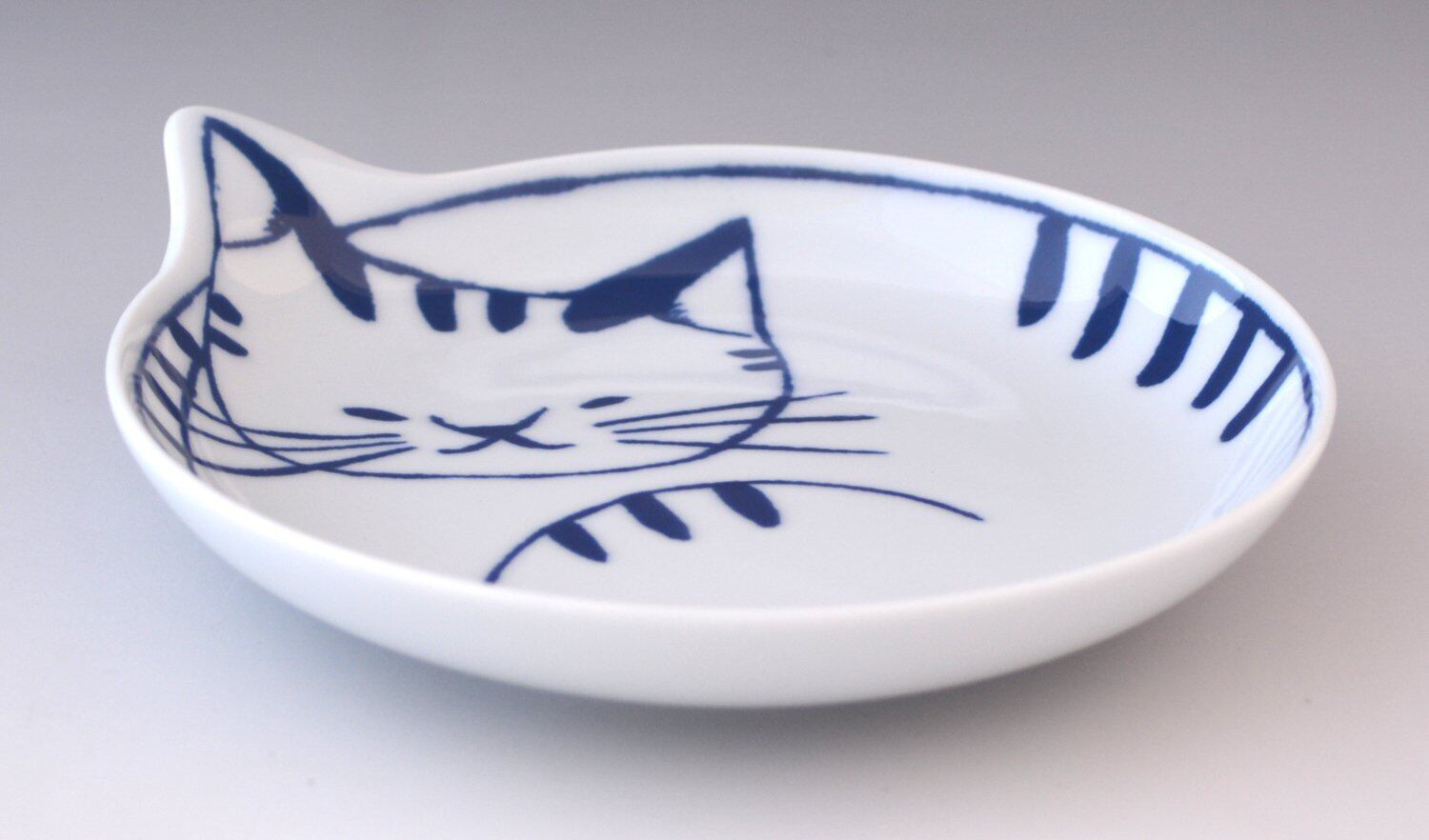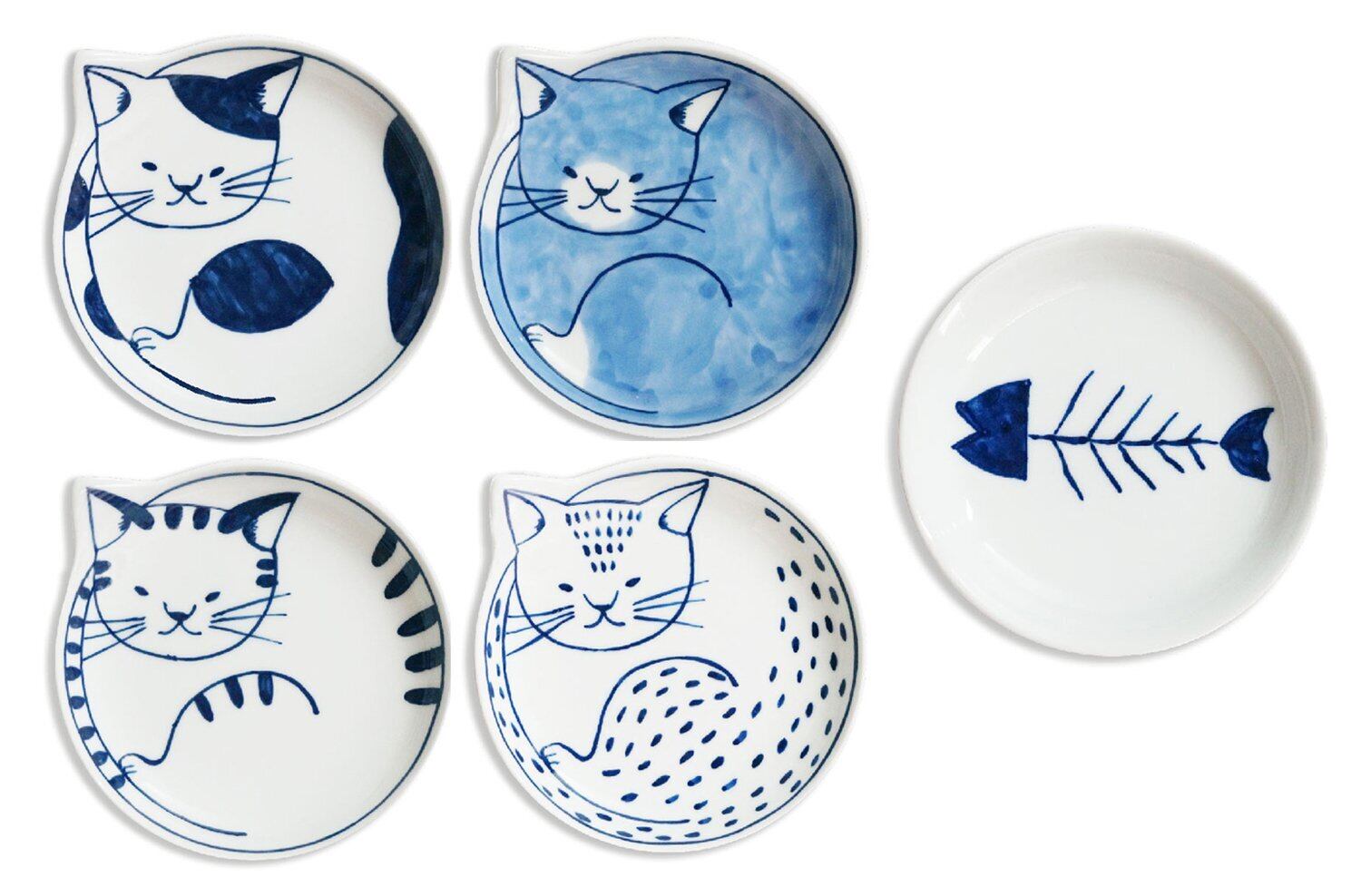石丸陶芸 波佐見焼 neco ネコ と サカナノホネ 猫柄 皿 小皿 取り皿 直径14cm 5枚 食器セット プレゼント 猫 グッズ 雑貨 電子レンジ 食洗機対応 和食器 日本製 303302B500