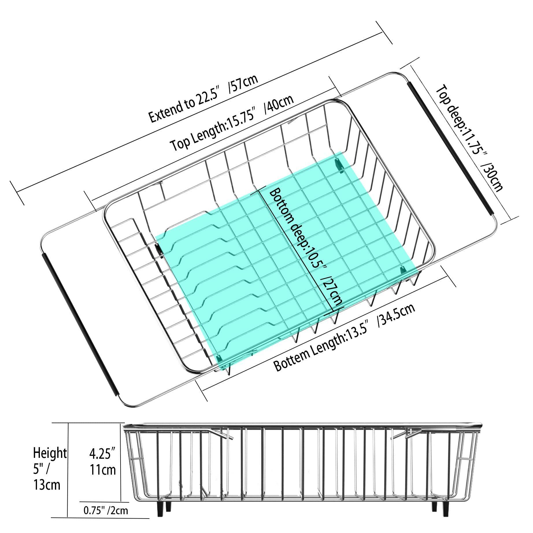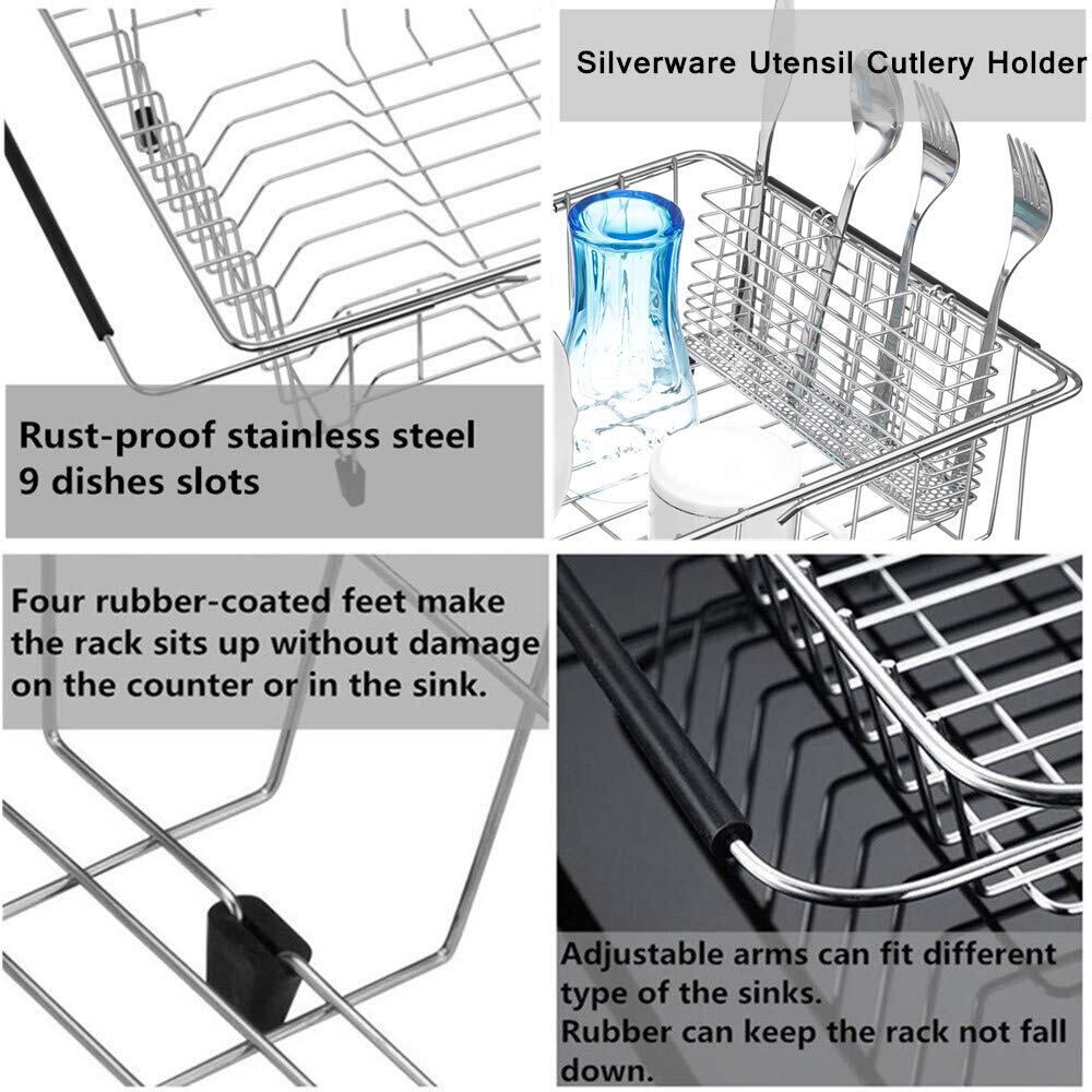 SANNO 伸縮水切りかご スライド式水切りバスケット 食器水切りかご キッチンラック カトラリーホルダー付き ステンレス製