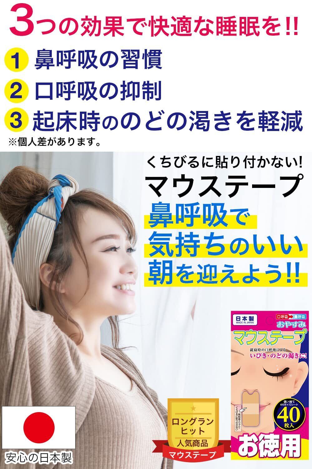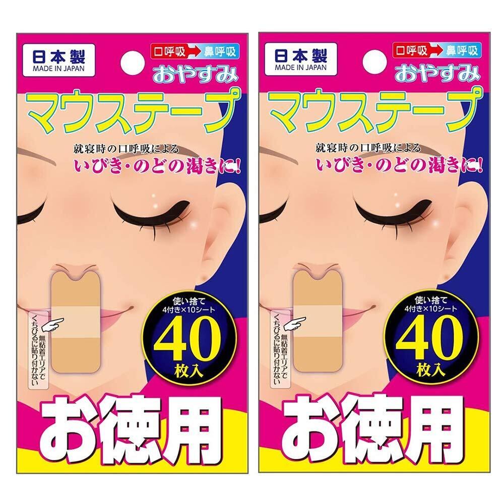 口閉じテープ おやすみ マウステープ 増量タイプ 40枚入×2個セット「計80枚」日本製 いびき軽減グッズ 鼻呼吸テープ