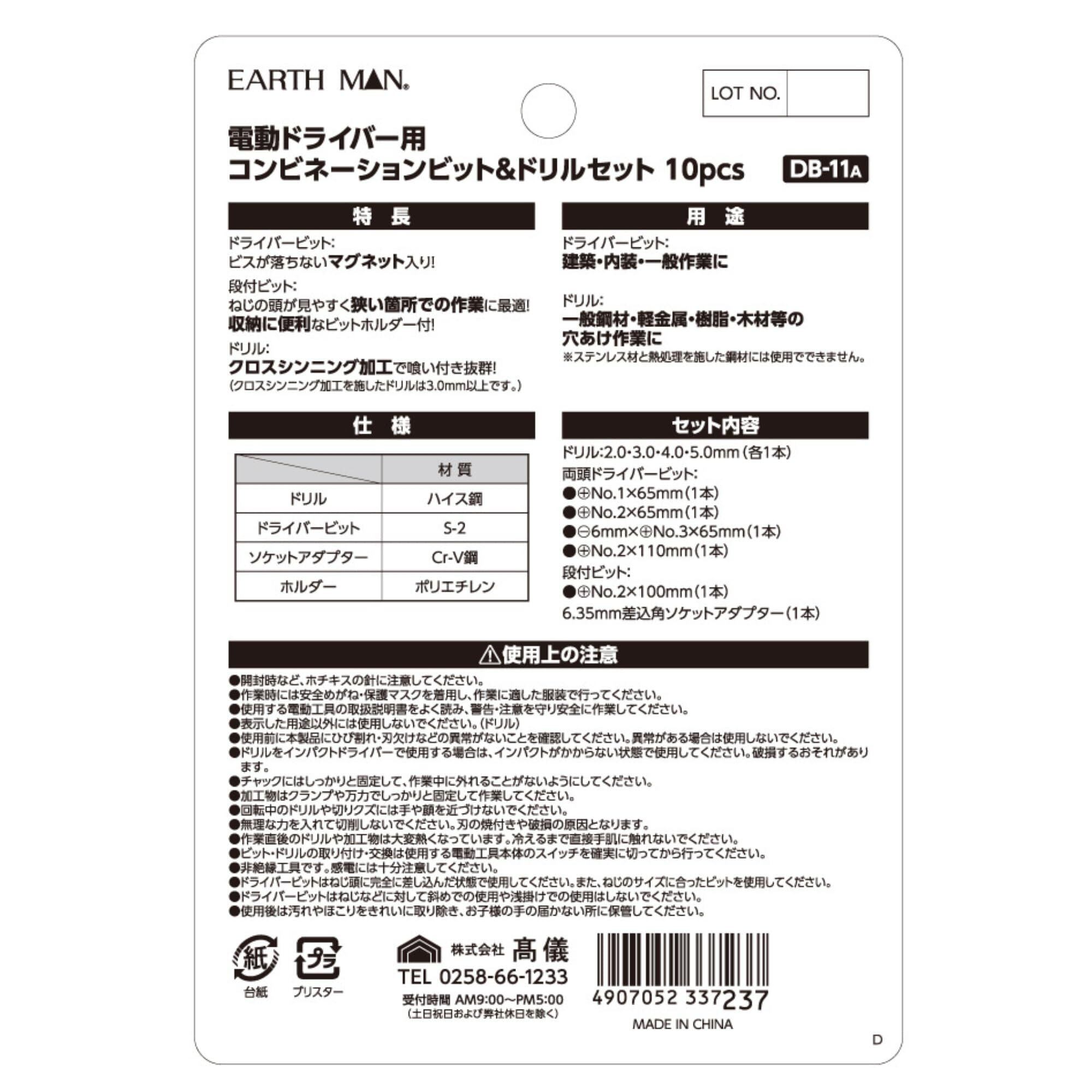 高儀(Takagi) EARTH MAN コンビネーションビット&ドリルセット 10pcs DB-11A 高儀 たかぎ