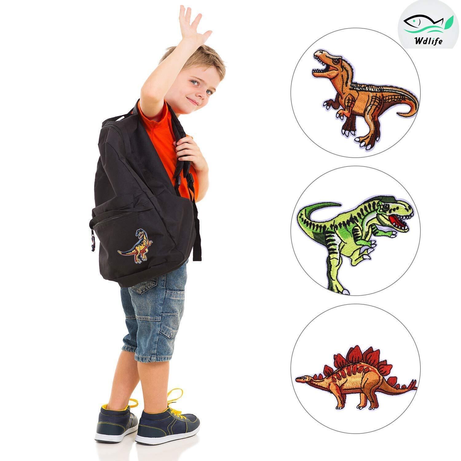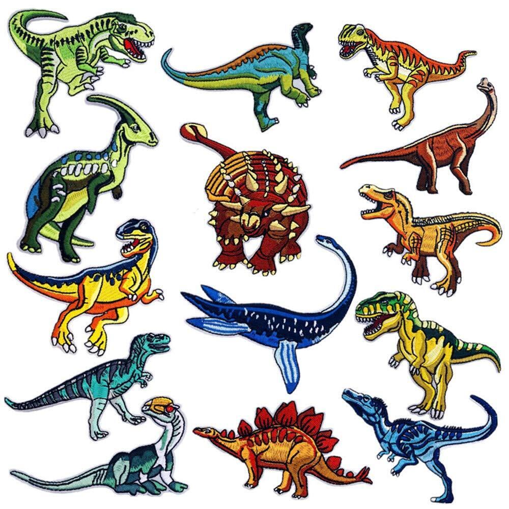 【Wdlife】ワッペン アップリケ アイロンワッペン刺繍 動物 猫17種類キャラクタ- パッチ男の子 女の子 かわいい かっこいい 入園 入学 マーク 幼稚園 保育園 小学校 ギフト イニシャル お名前 名入れ (恐竜14枚セット)