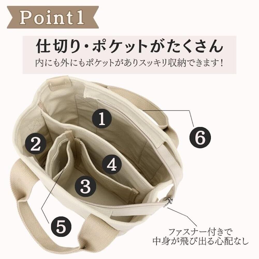 大容量:幅23cm×高さ21cm×マチ15cm!仕切りとポケットがたくさんついており、カバンの中が散らからずに収納可能。必要なものがすべて入ります。