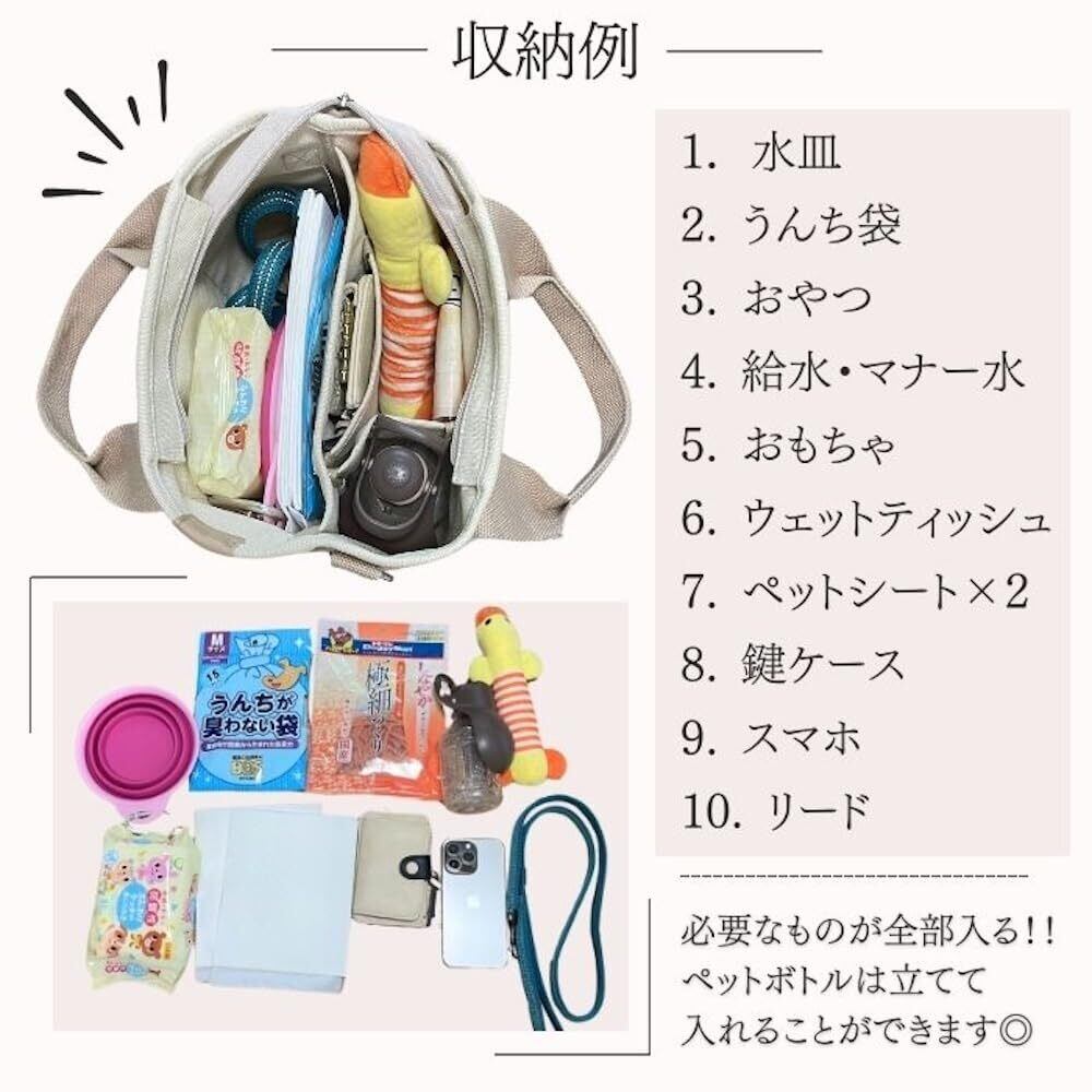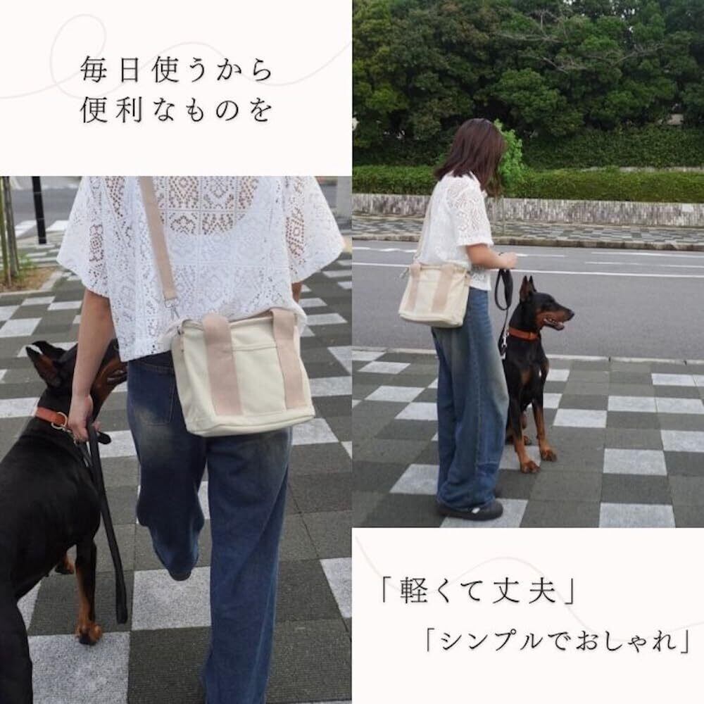 [COTEN] お散歩バッグ 2way ショルダー ハンドバグ マナーバッグ 仕切り付き 大容量 肩ひも付き ファスナー キャンバス コンパクト トート 散歩 犬 猫 おでかけ 可愛い | BASE SHOP