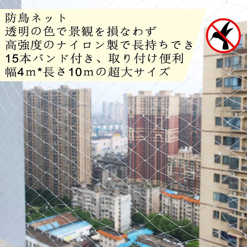 防鳥ネット ベランダ鳥よけネット 幅4m×長さ10m カラス 鳩対策防鳥網 果樹守りや野菜栽培や防獣ネット 猫侵入脱走防止 透明色 (結束バンド 15本付き)Limthe