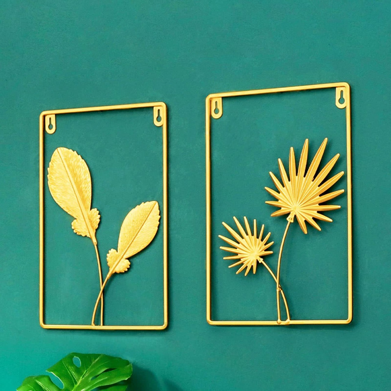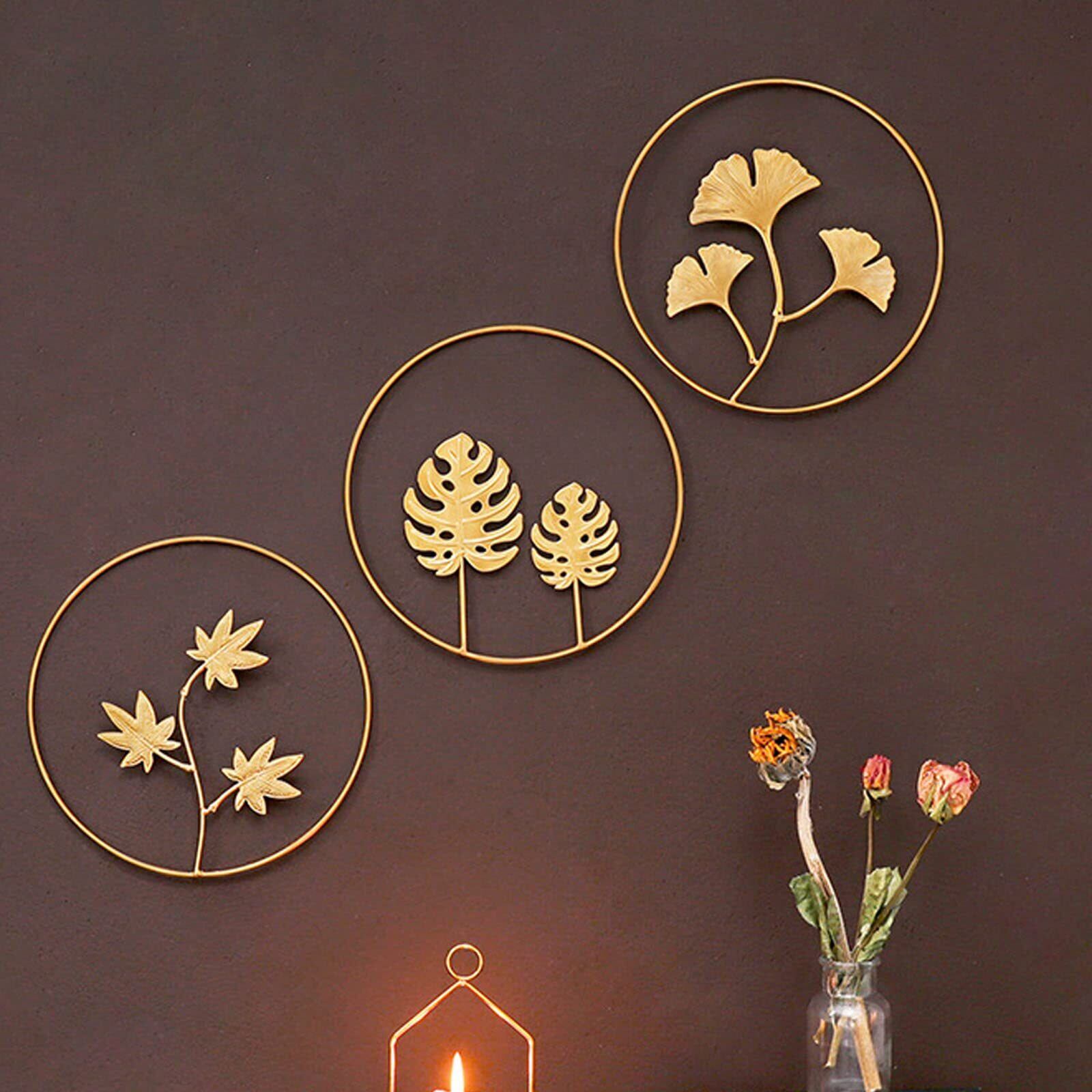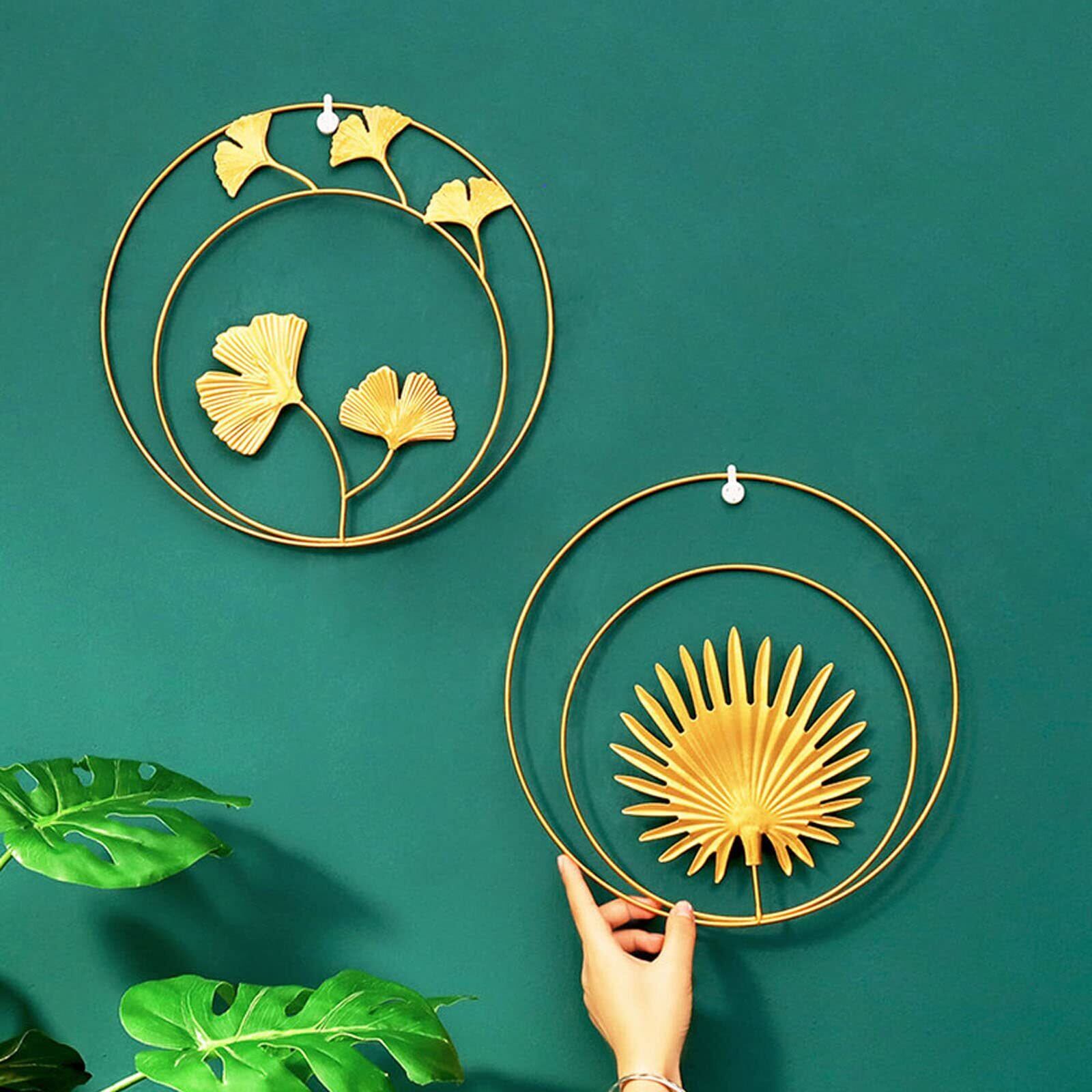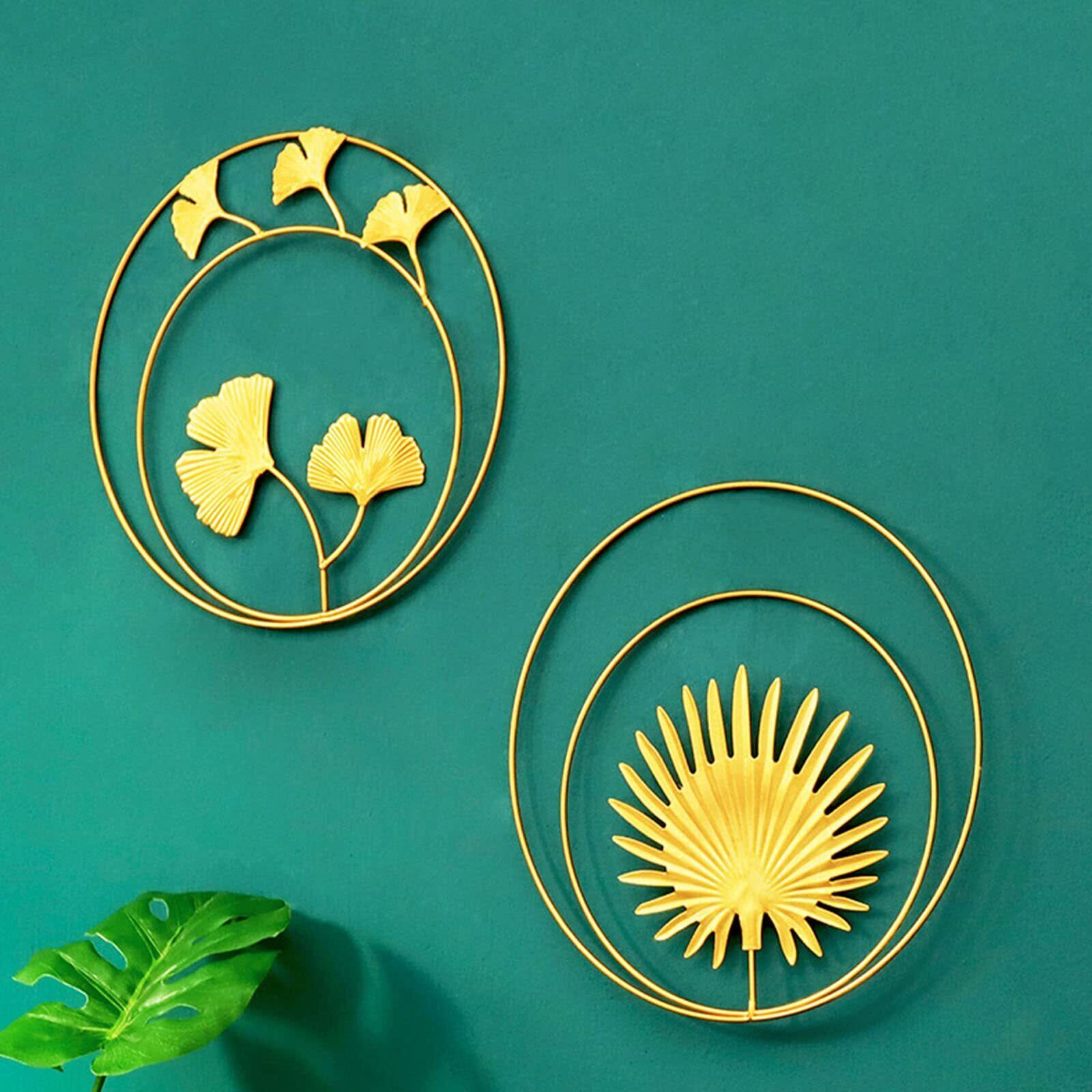 TARATI インテリア金属 絵画 インテリア おしゃれ北欧観葉植物アートパネルゴージャスな金色の鉄の彫刻 壁掛け 絵 玄関 インテリア 癒し 壁掛け アートポスター玄関 寝室の吊り下げ装飾 ホテルの壁の装飾 2円イチョウ葉