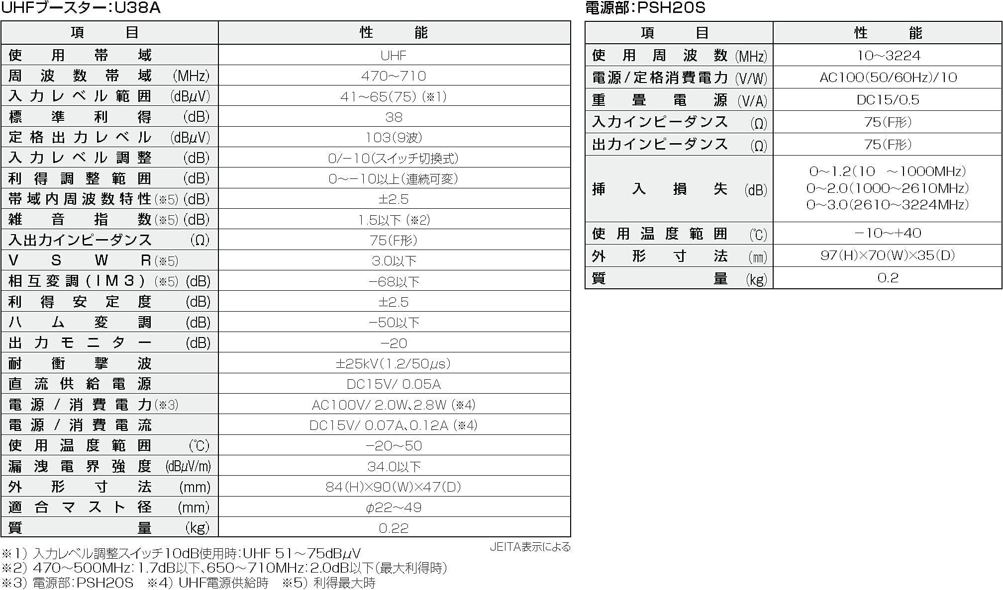 DXアンテナ 38dB UHFブースター U38A (U43A後継)