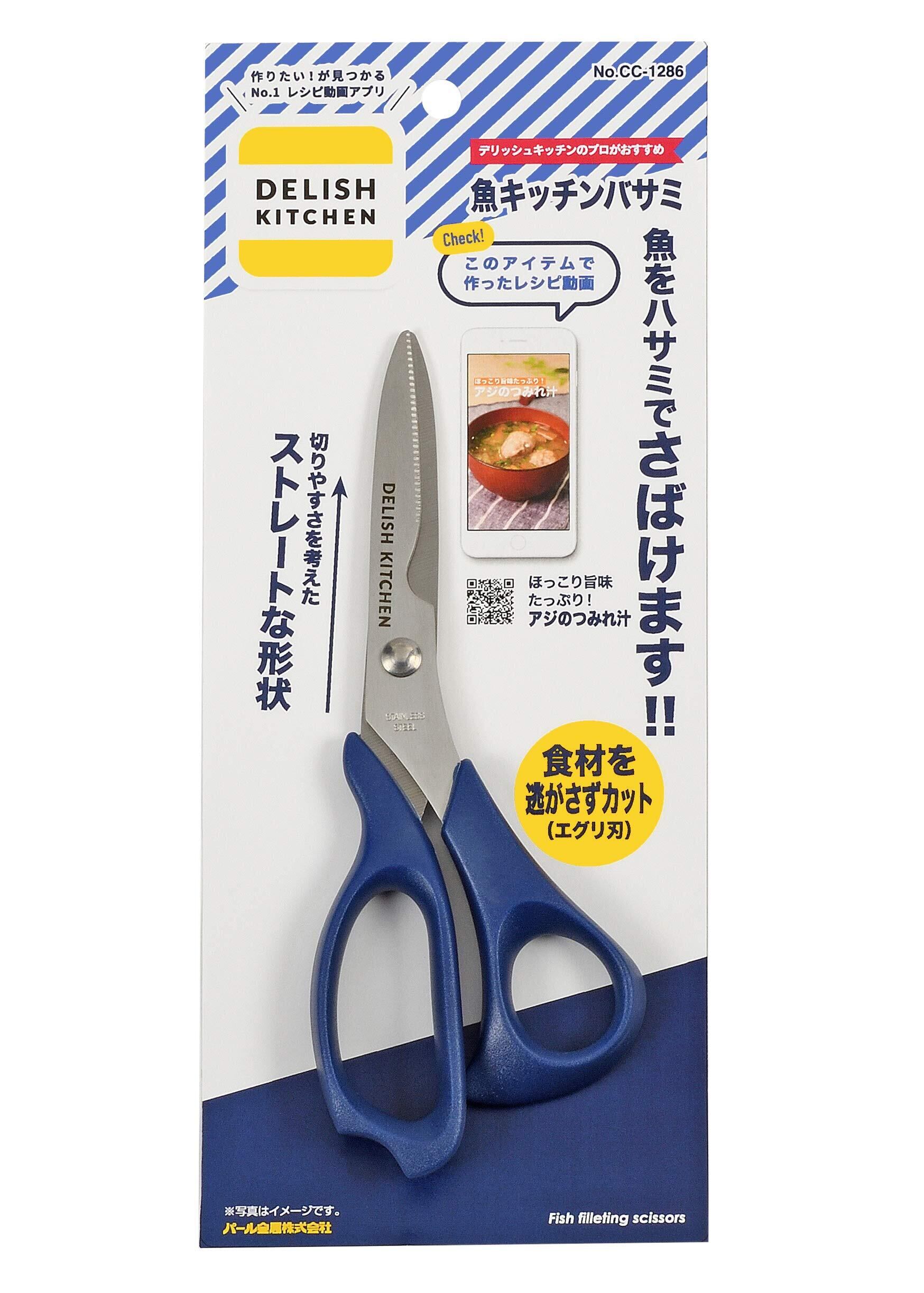 デリッシュキッチン パール金属 魚キッチンバサミ ネイビー 19×7.5×1.7cm CC-1286