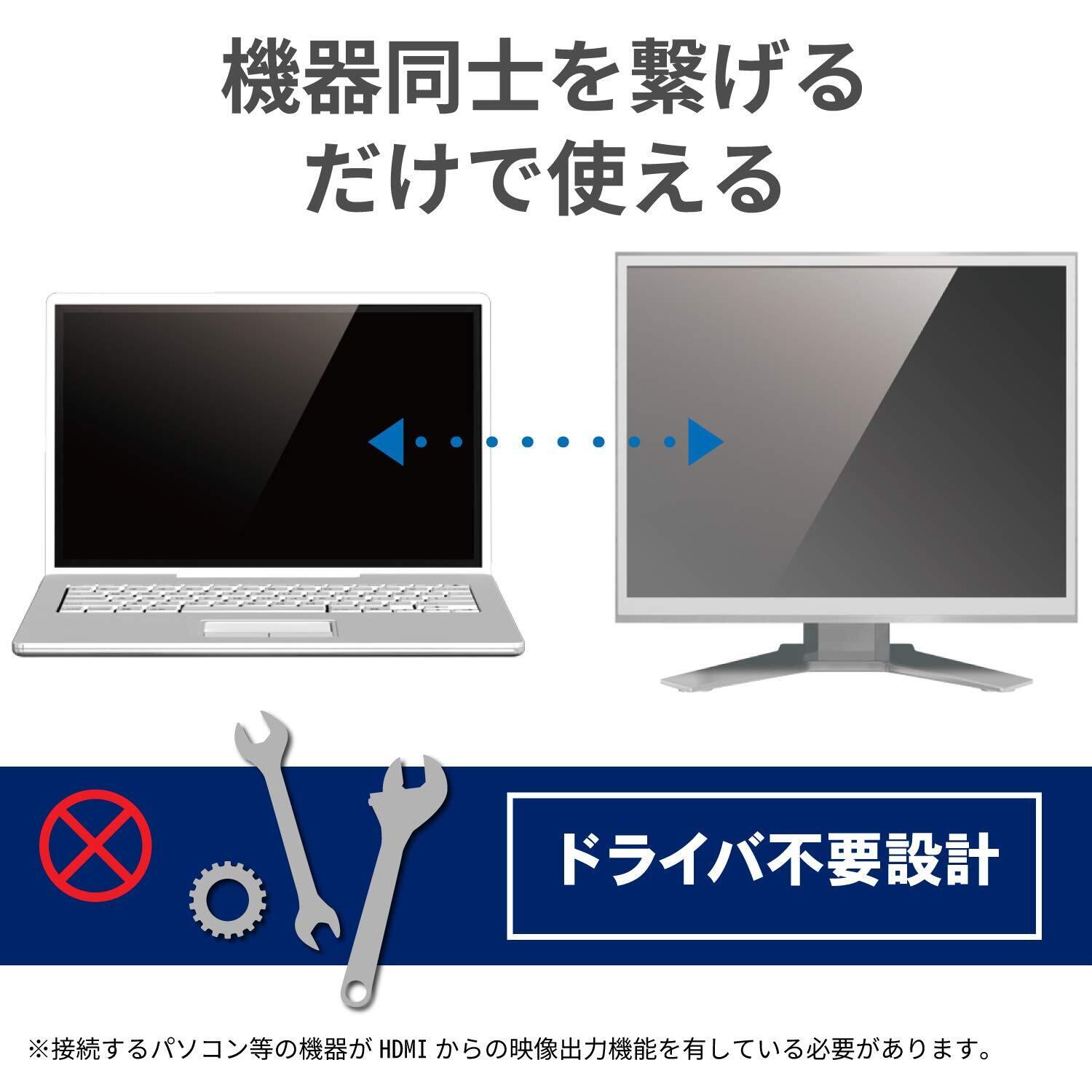 ●HDMI端子を搭載した機器の映像信号を変換し、VGA(D-sub15pin)入力端子を搭載したディスプレイ・テレビ・プロジェクターなどに出力することができるHDMI用VGA変換ケーブルです。●※VGA(D-sub15pin)からHDMIへの変換はできません。●※音声出力には対応していません。●ドライバ不要で、機器同士を接続するだけで使用可能です。●1920×1080ピクセルの解像度に対応しています。●追加したディスプレイを一つの画面として表示するマルチディスプレイと、一台目のディスプレイと同じ画面を表示するミラーリングに対応しています。●アダプタの本体内部には、シールド効果が高く、外部ノイズの影響を受けにくい金属シェル構造を採用しています。●外部ノイズの干渉を受けにくい3重シールドケーブルを採用しています。●サビなどに強く信号劣化を抑える金メッキピンを採用しています。