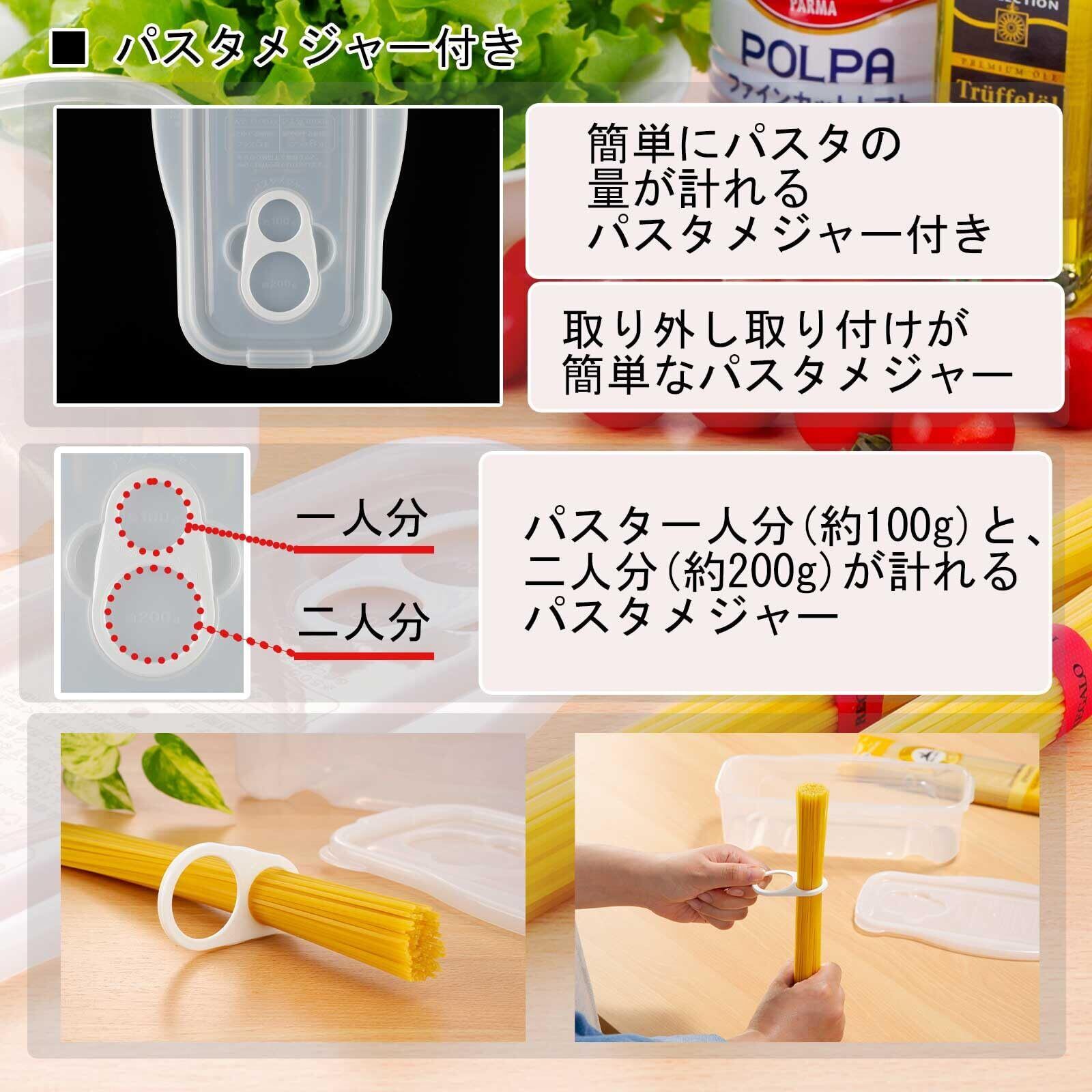 取り外し取り付けが簡単なパスタの量が計れるパスタメジャー付き。1人分用(100g)2人分用(200g)と使い分けできます。