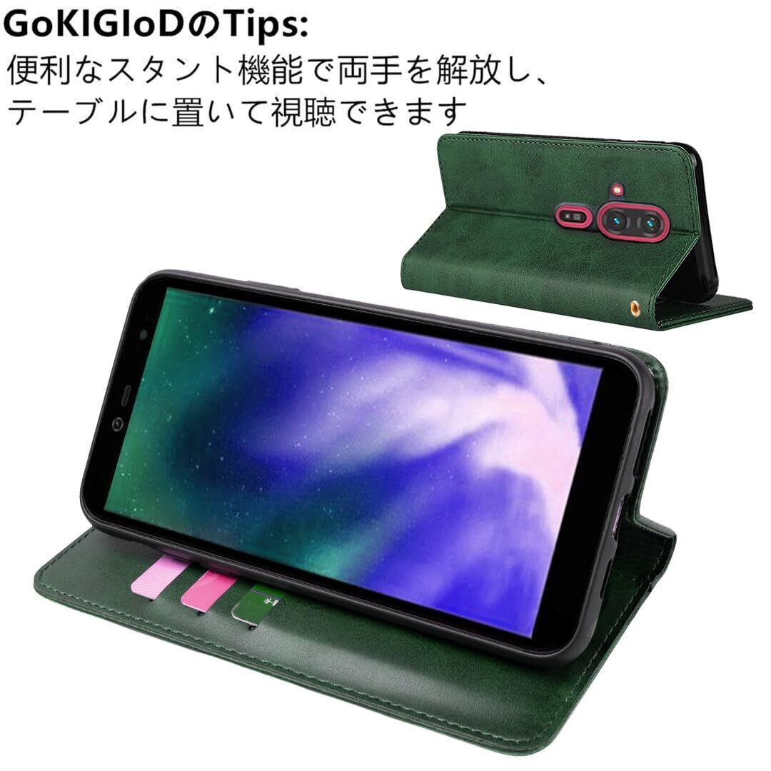 らくらくスマートフォン F-53E ケース 手帳型 ストラップ 同梱 適用 F53E スマホケース 手帳 F53Eカバー ドコモ F-53Eケース 携帯ケース 【GoKIGIoD】 財布型 内蔵マグネット 弱磁 カード収納 ストラップホール スタンド機能 耐衝撃 レトロ グリーン | BASE SHOP