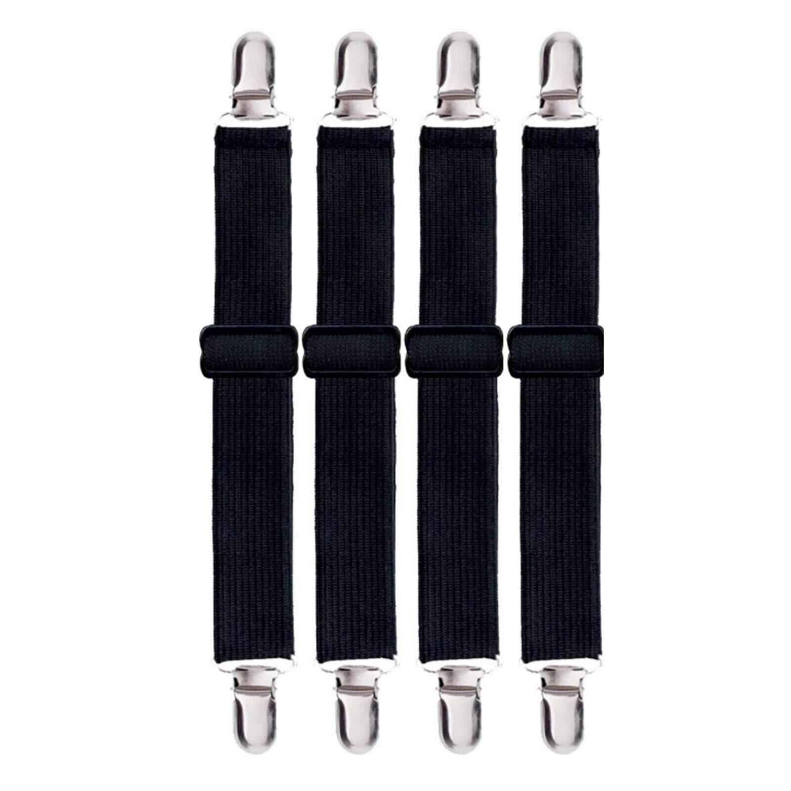 YFFSFDC ベッドシーツ ズレ防止クリップ 調節可能 4本セット 幅3cm 滑り止め ゴムバンド コーナー止め(ブラック)