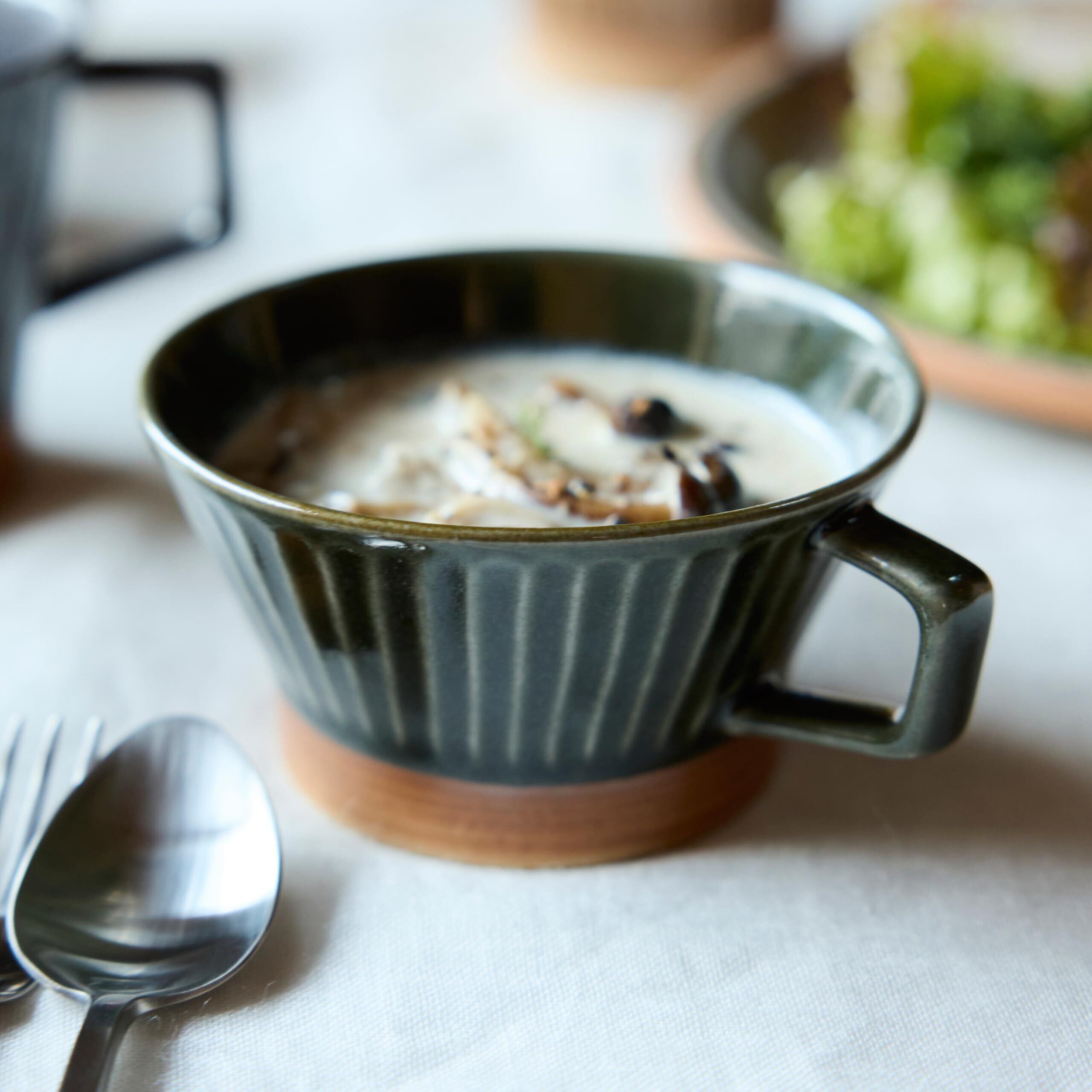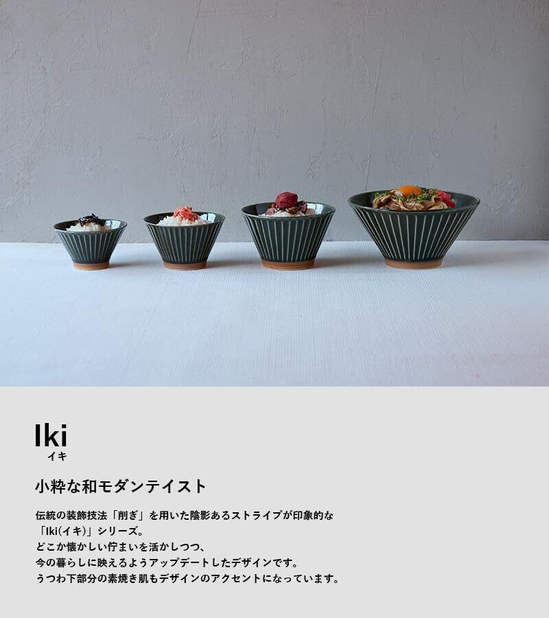伝統の装飾技法「削ぎ」を用いた陰影あるストライプが印象的な 「Iki(イキ)」シリーズ。 どこか懐かしい佇まいを活かしつつ、 今の暮らしに映えるようアップデートしたデザインです。 うつわ下部分の素焼き肌もデザインのアクセントになっています。