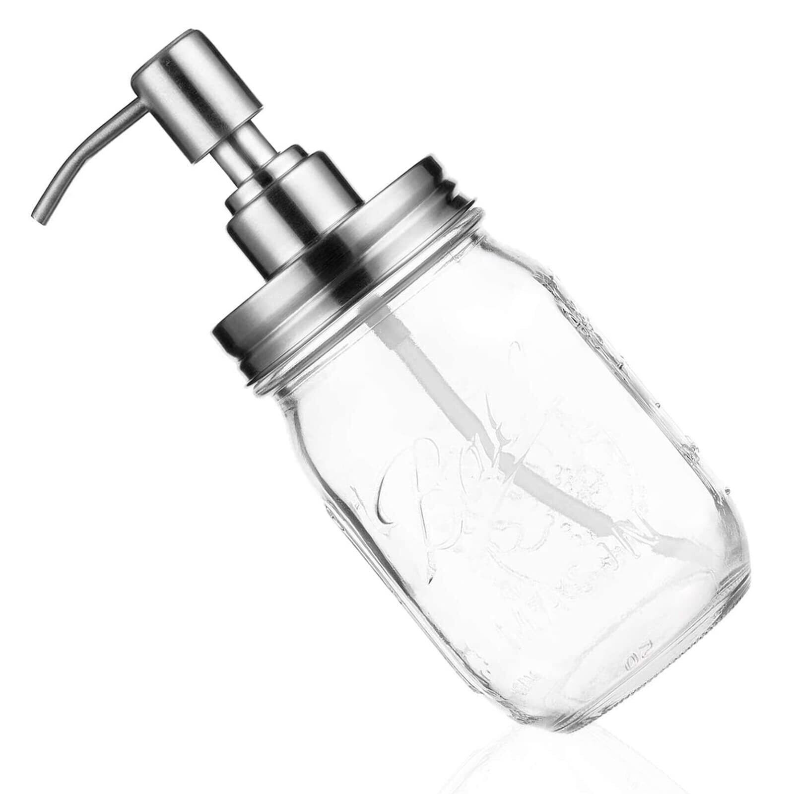 16オンス透明ガラスメイソンジャーソープディスペンサーステンレス鋼ポンプ19*8cm