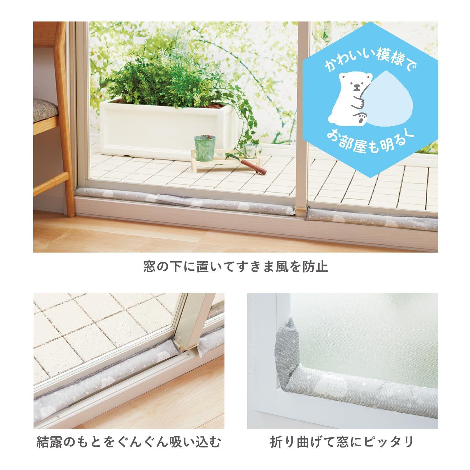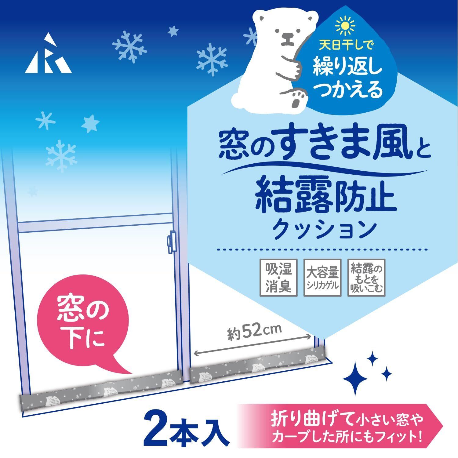 アール(R) すきま風と結露防止クッション まど活 シロクマ 52×6×1.5(cm) シリカゲル 折り曲げ可能 繰り返し使用可能 2本 H-3001