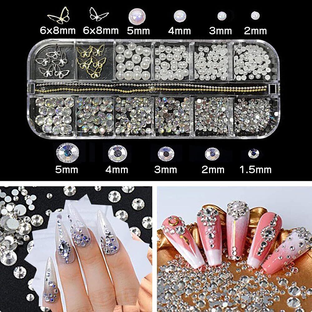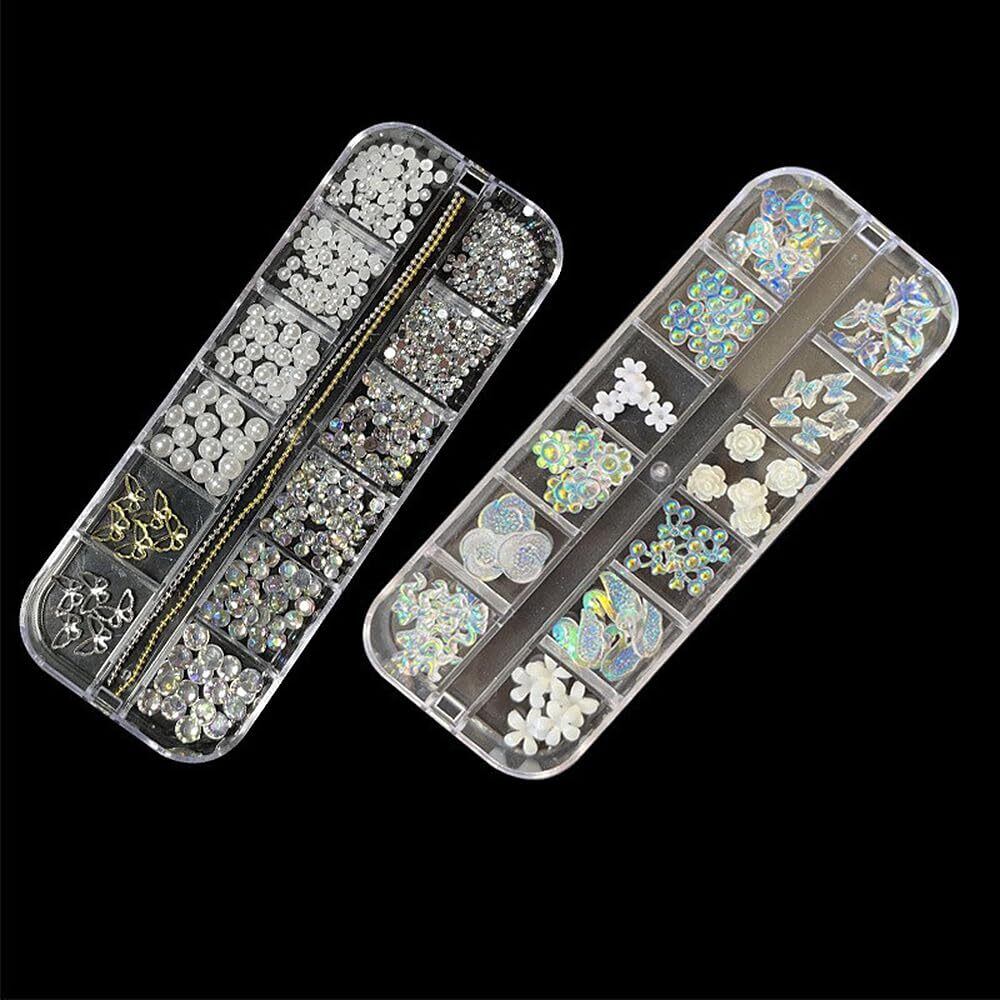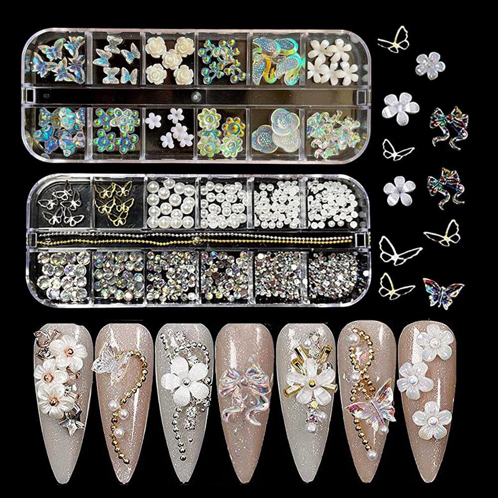 LIANHATA ネイルアートパーツ 多種類 3D 立体 ネイルパーツ デコパーツ ネイルデコレーション ラインストーン パールストーン リボン 蝶々 花 パール ネイル レジン かわいい DIY 手芸 ハンドメイド 収納ケース2個付き | BASE SHOP